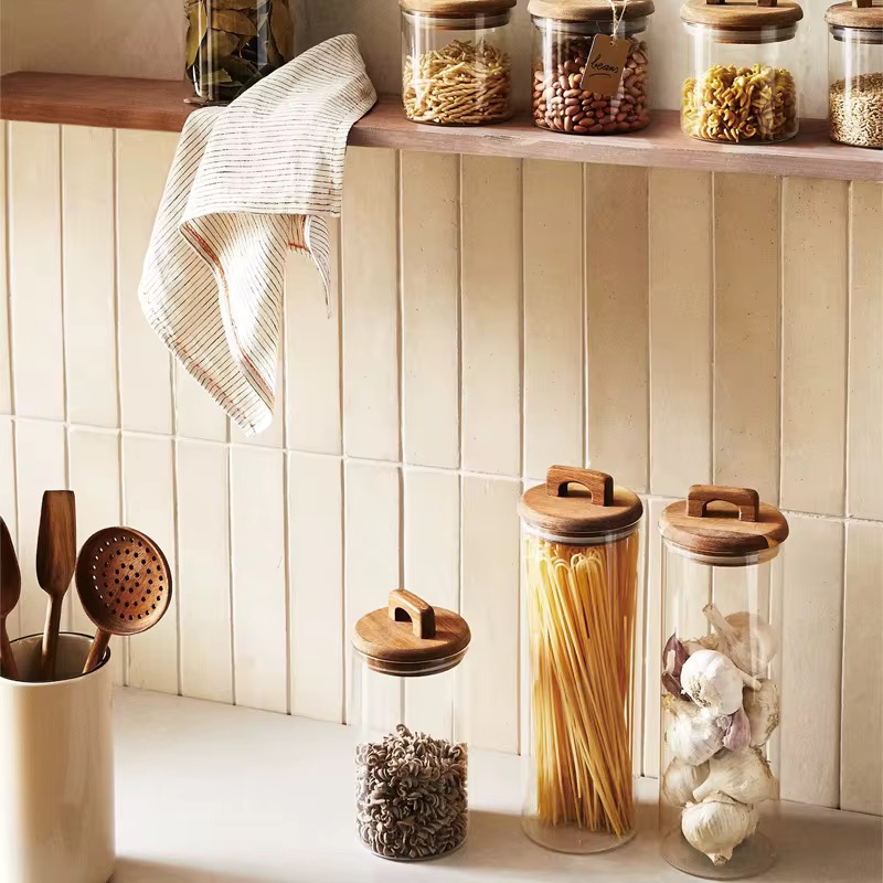 CAJA DE PLÁSTICO CON TAPA BAMBU RECTANGULAR (L)