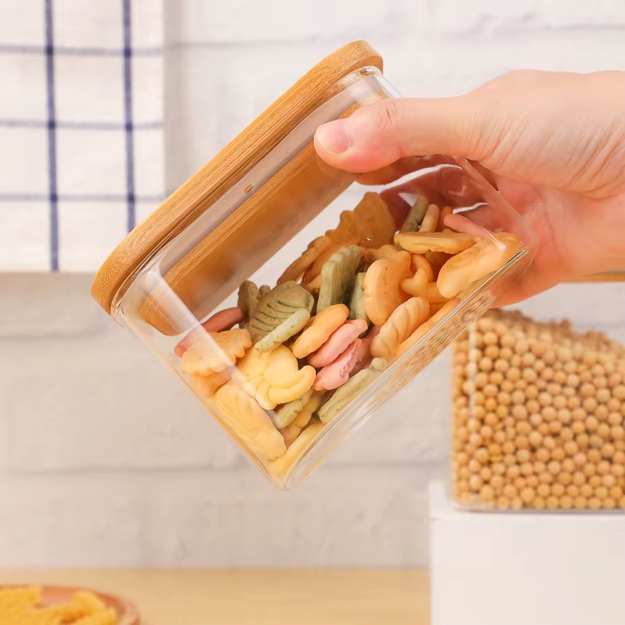 CAJA DE PLÁSTICO CON TAPA BAMBU RECTANGULAR (S)