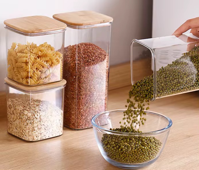 CAJA DE PLÁSTICO CON TAPA BAMBU RECTANGULAR (S)