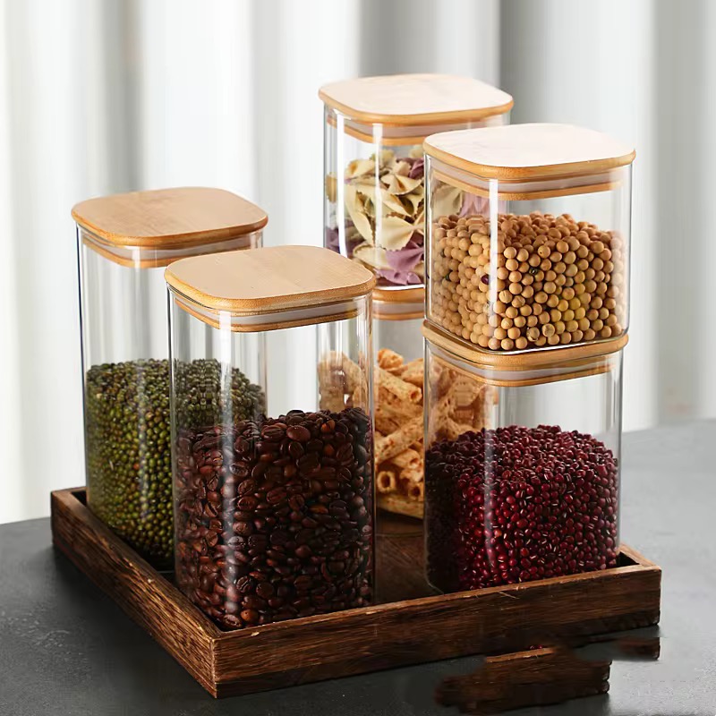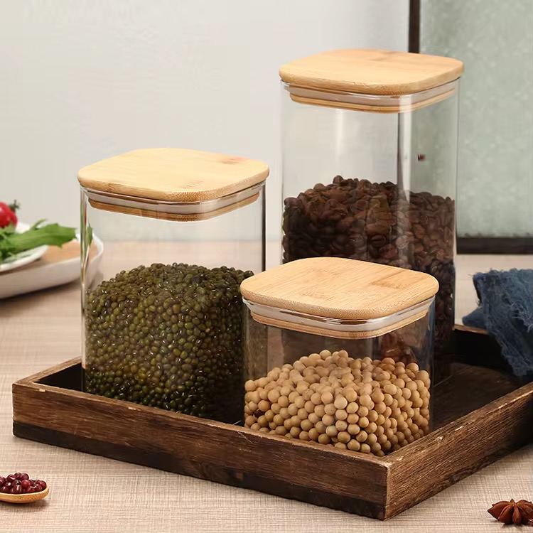 CAJA DE PLÁSTICO CON TAPA BAMBU RECTANGULAR (M)