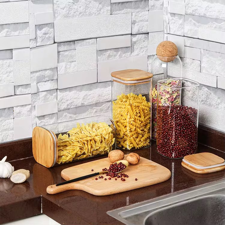 CAJA DE PLÁSTICO CON TAPA BAMBU RECTANGULAR (S)