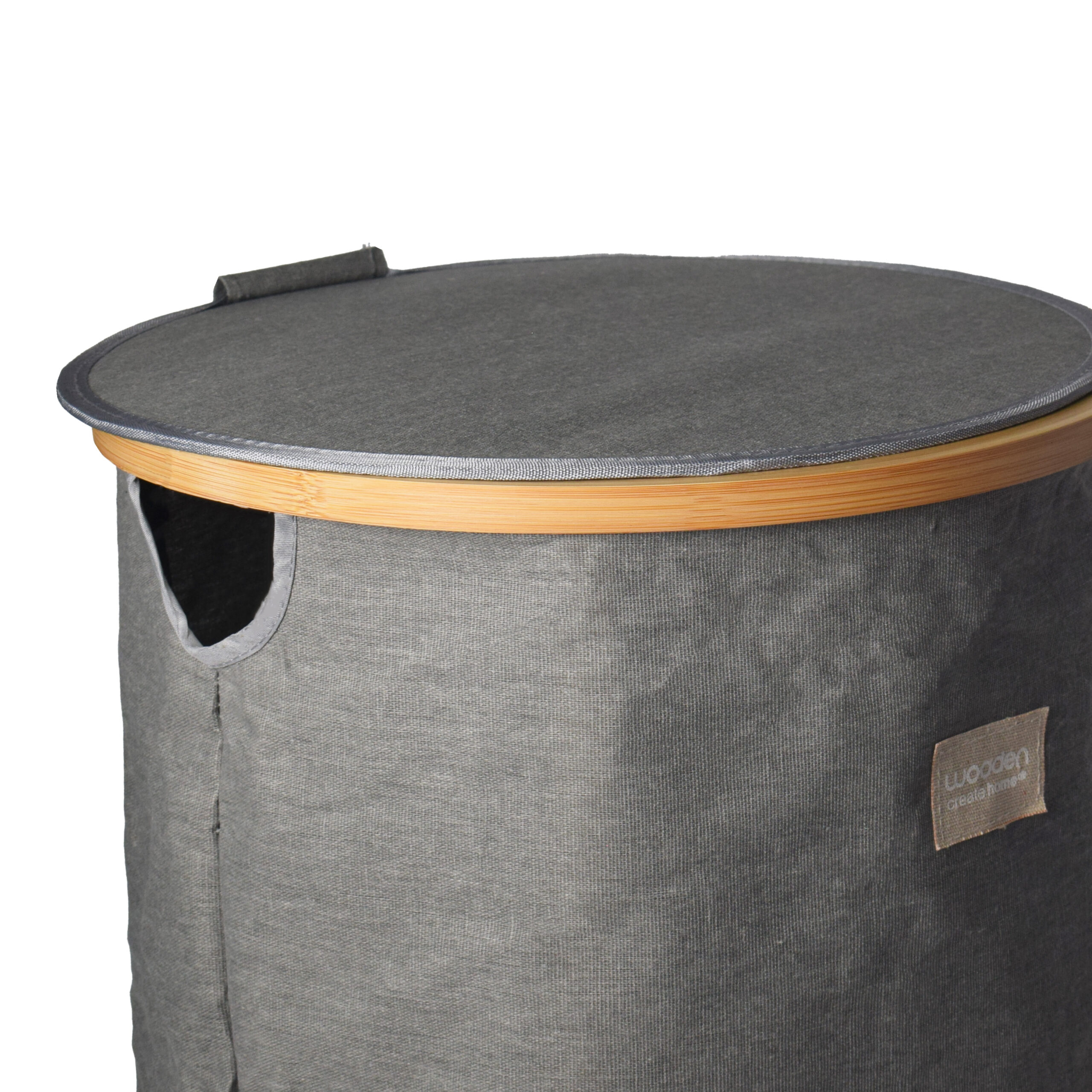 CAJA PLEGABLE FORRADA EN LINO MANIJA DE MADERA (S)