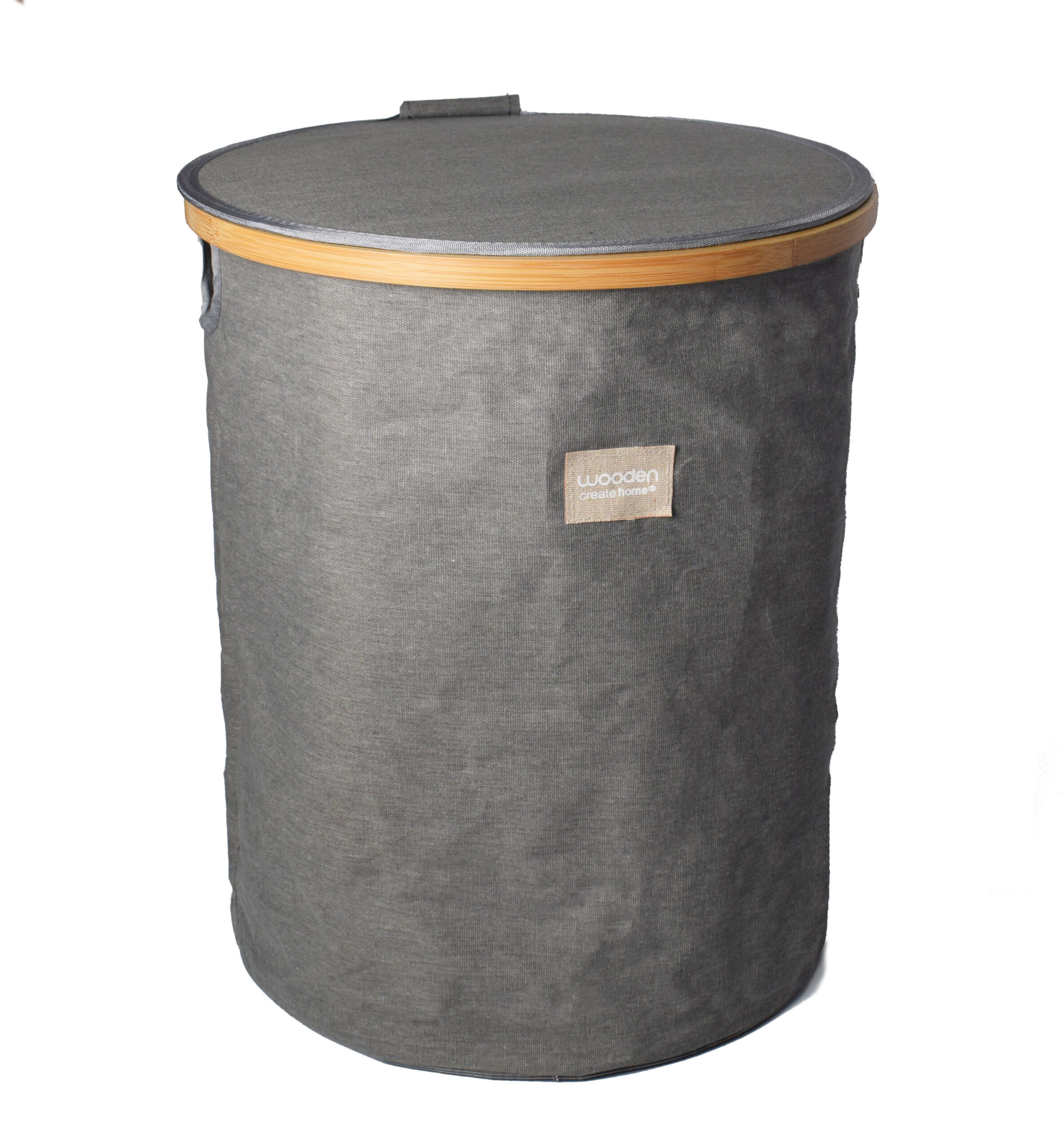 CAJA PLEGABLE FORRADA EN LINO MANIJA DE MADERA (L)