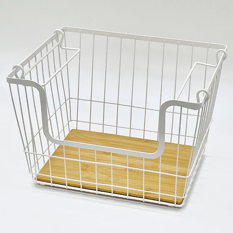 CANASTO DE METAL CON BASE DE MADERA