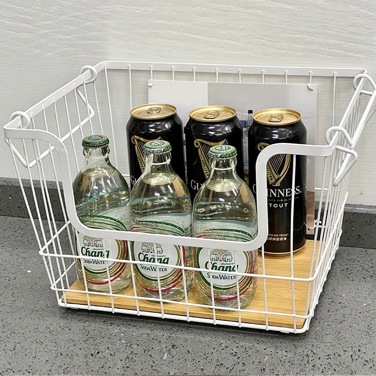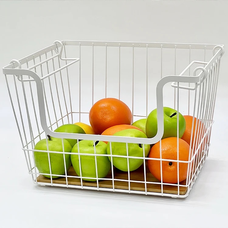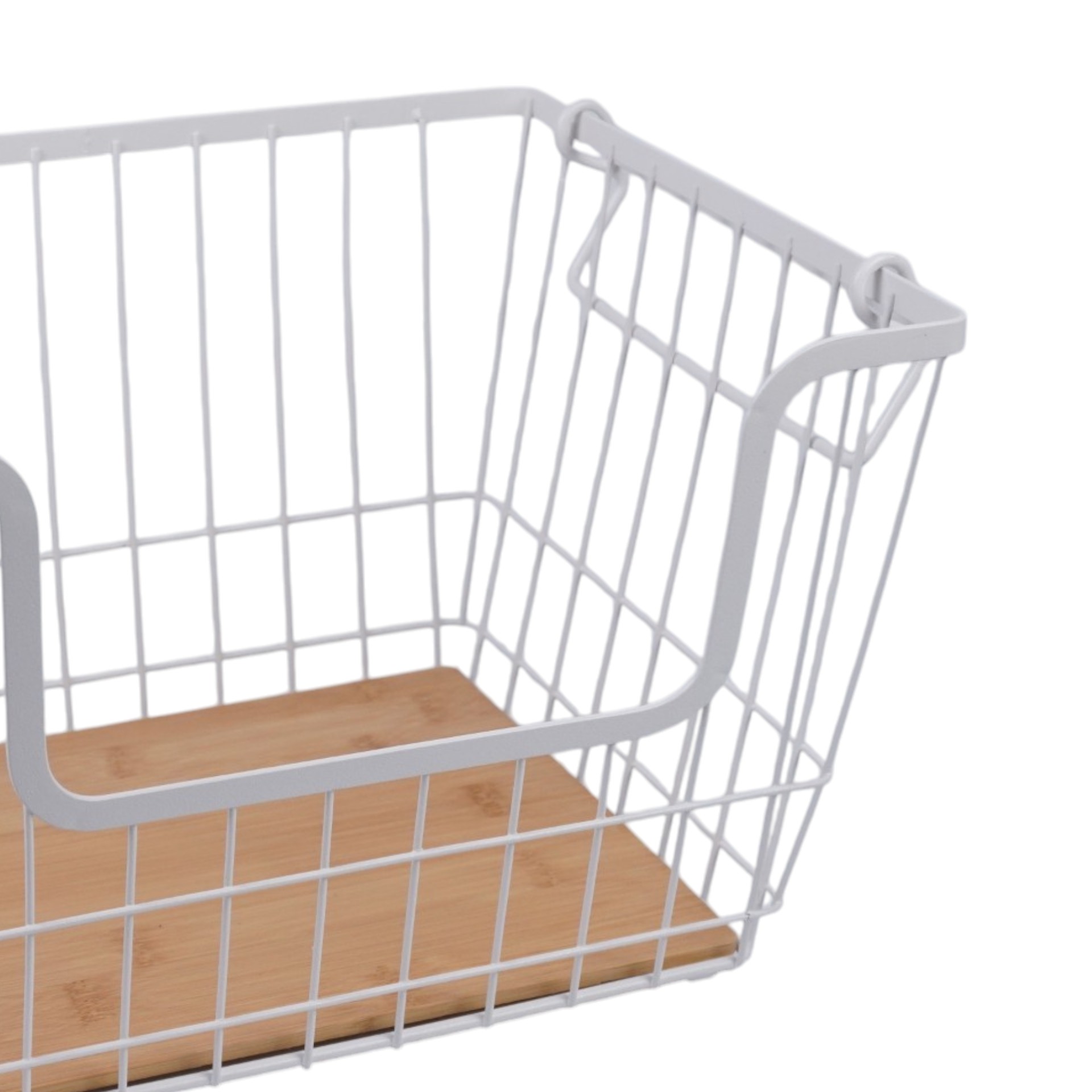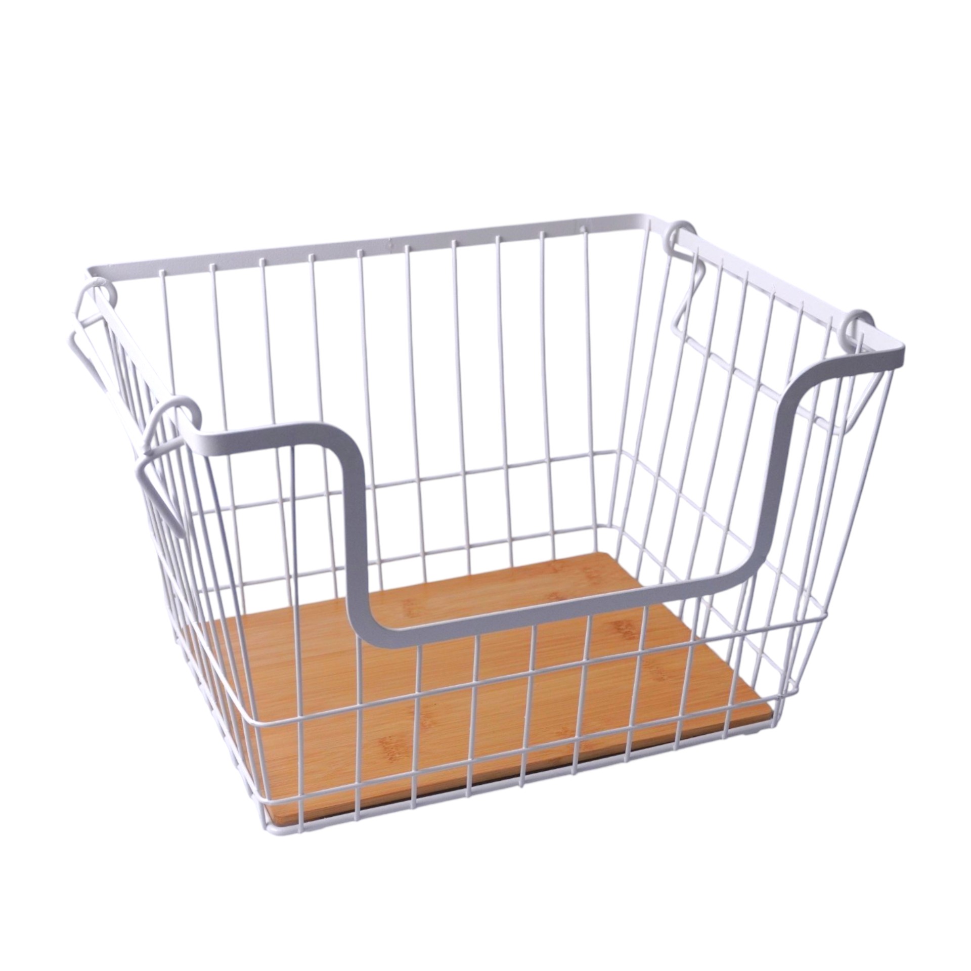 CANASTO DE METAL RECTANG. 2 PISOS CON MANIJA DE MADERA