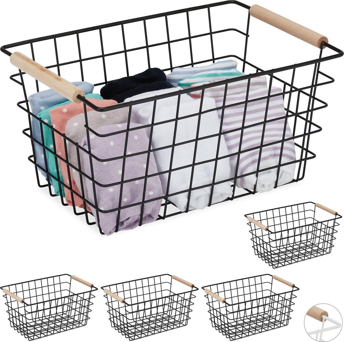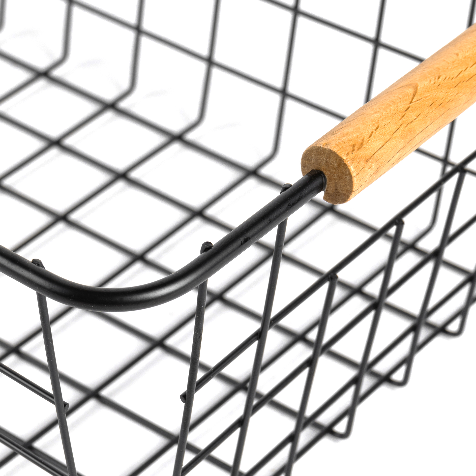 CANASTO DE METAL CON MANIJA DE MADERA
