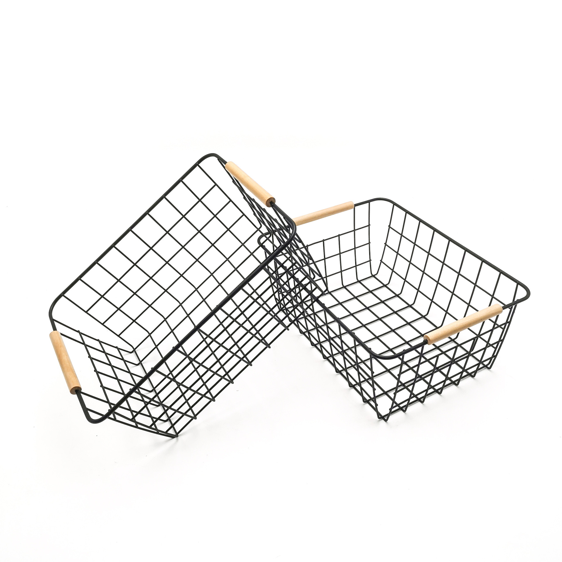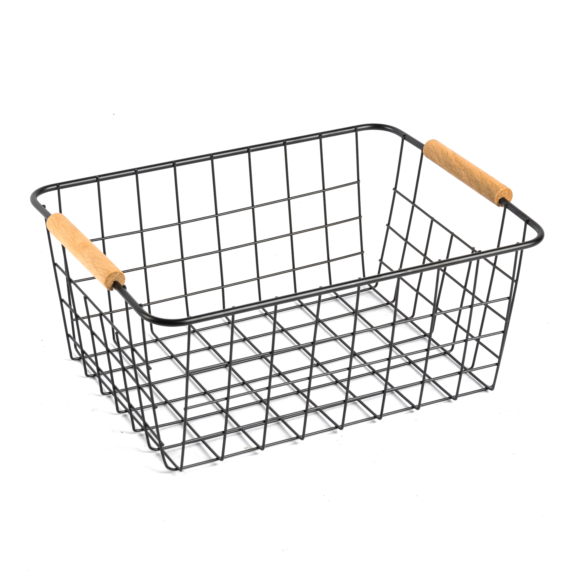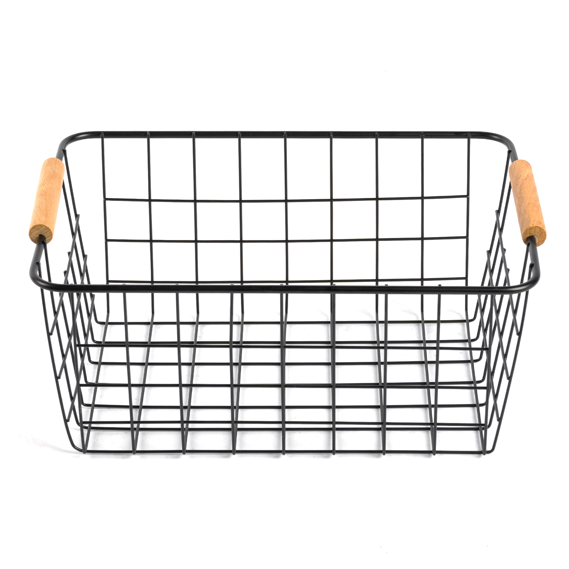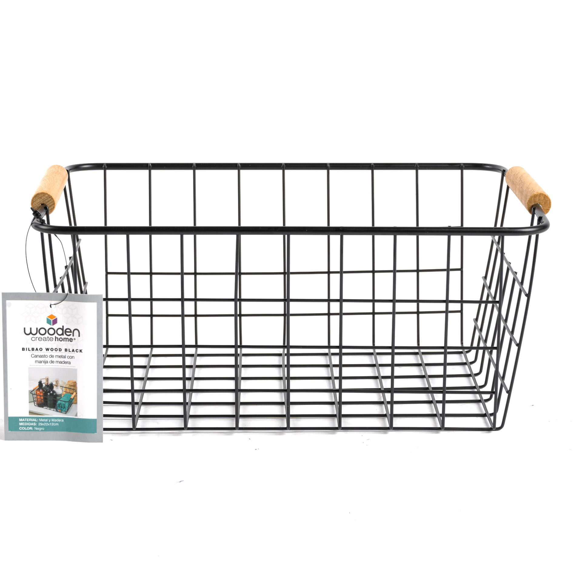 CANASTO DE METAL CON 2 MANIJAS DE MADERA