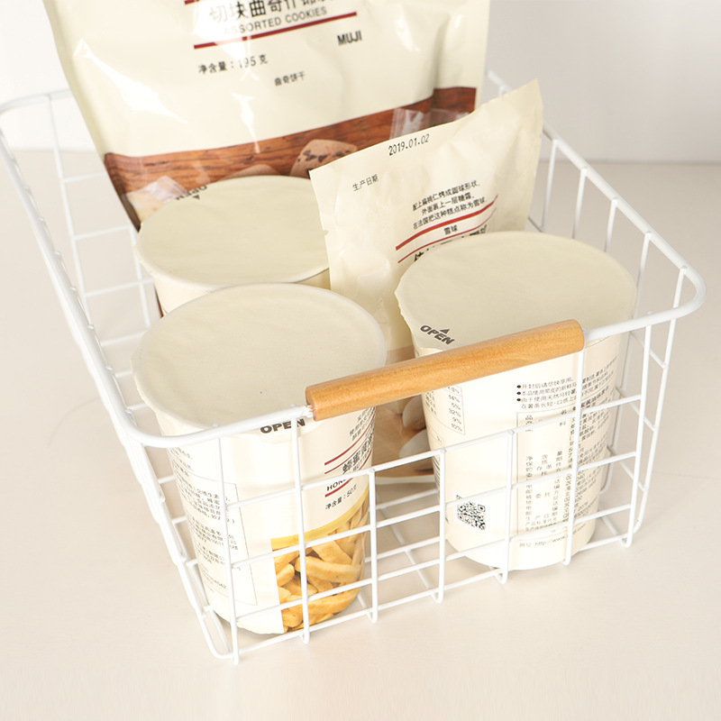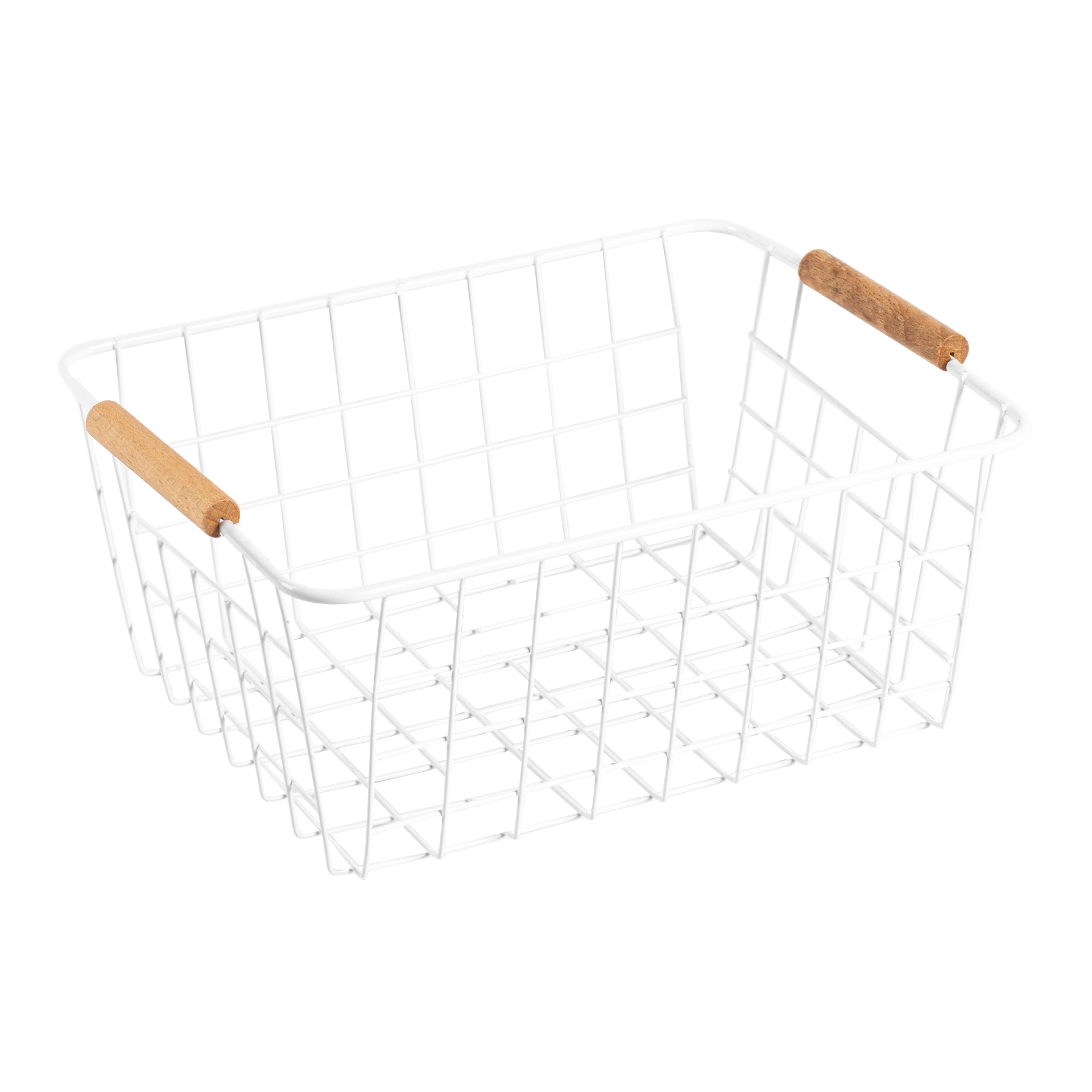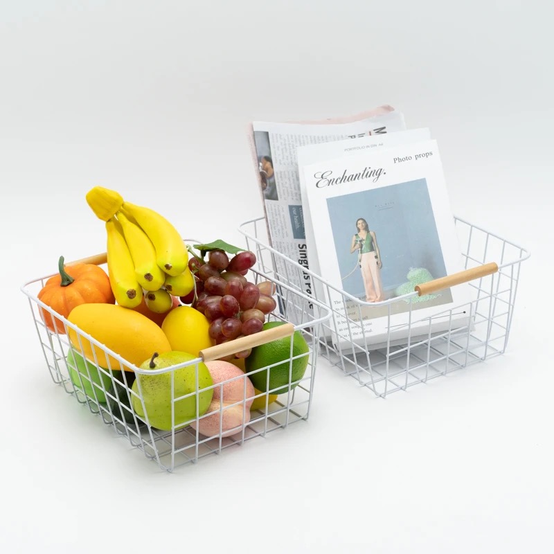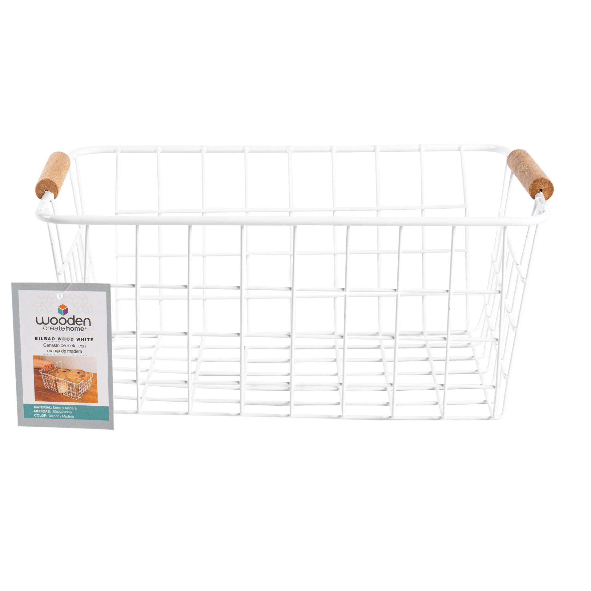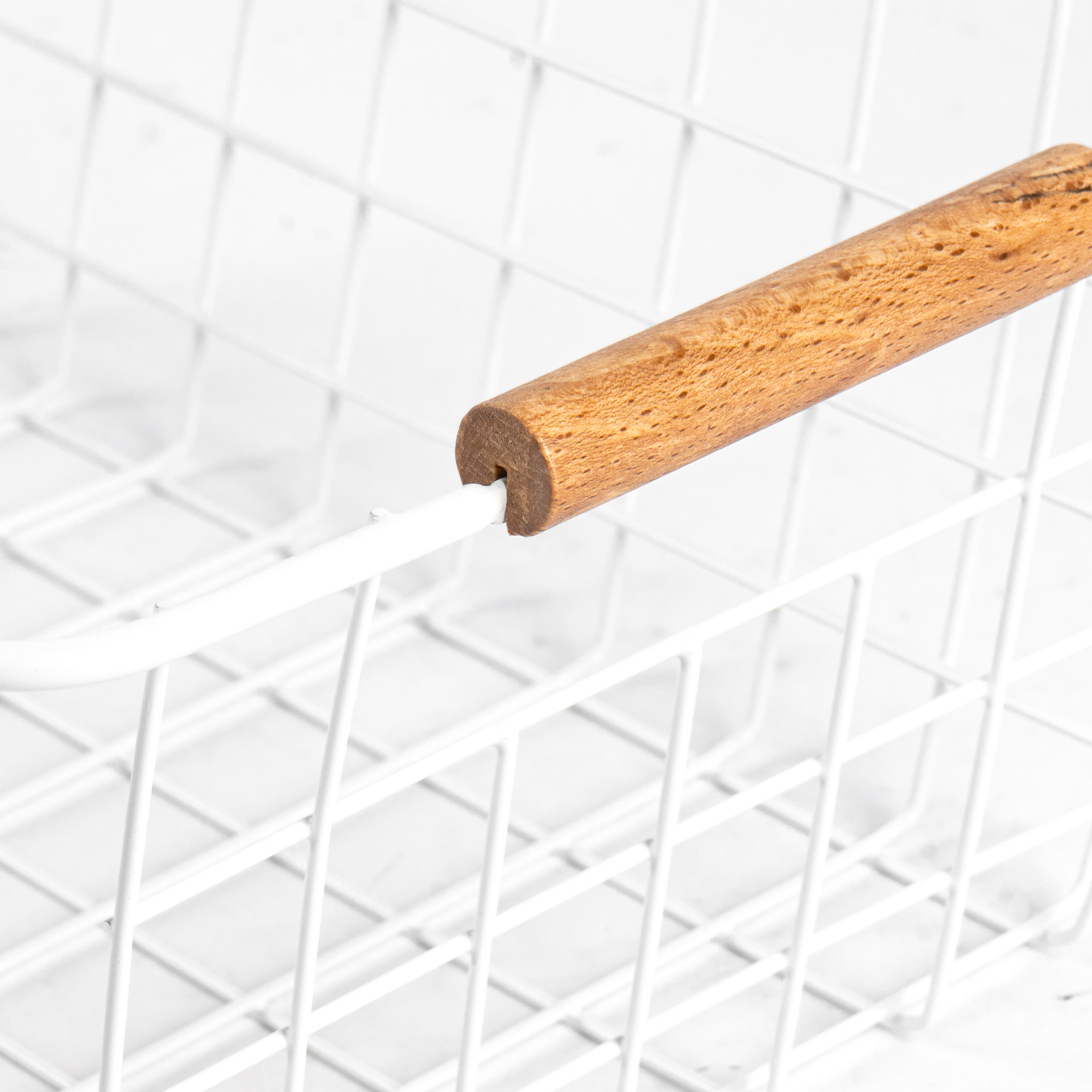CANASTO DE METAL RECTANG. 2 PISOS CON MANIJA DE MADERA