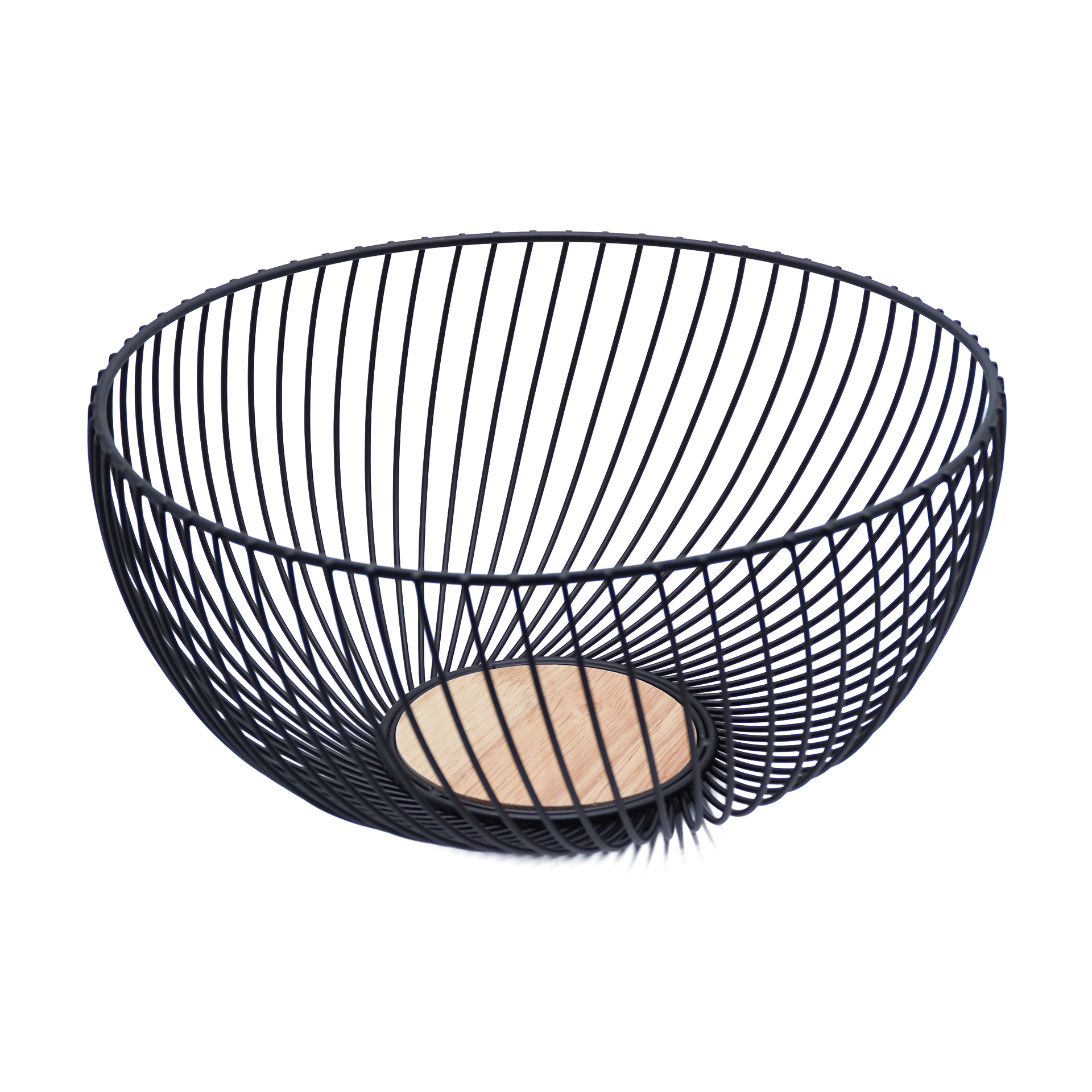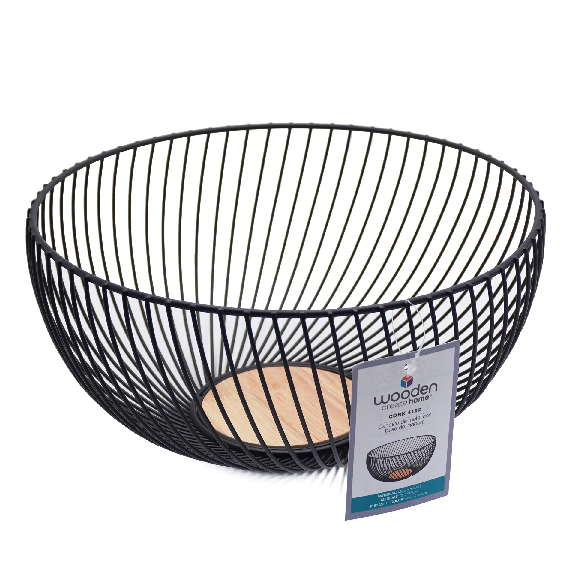CANASTO DE METAL CON MANIJA DE MADERA