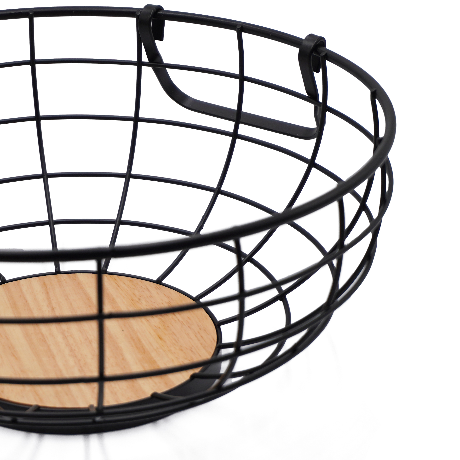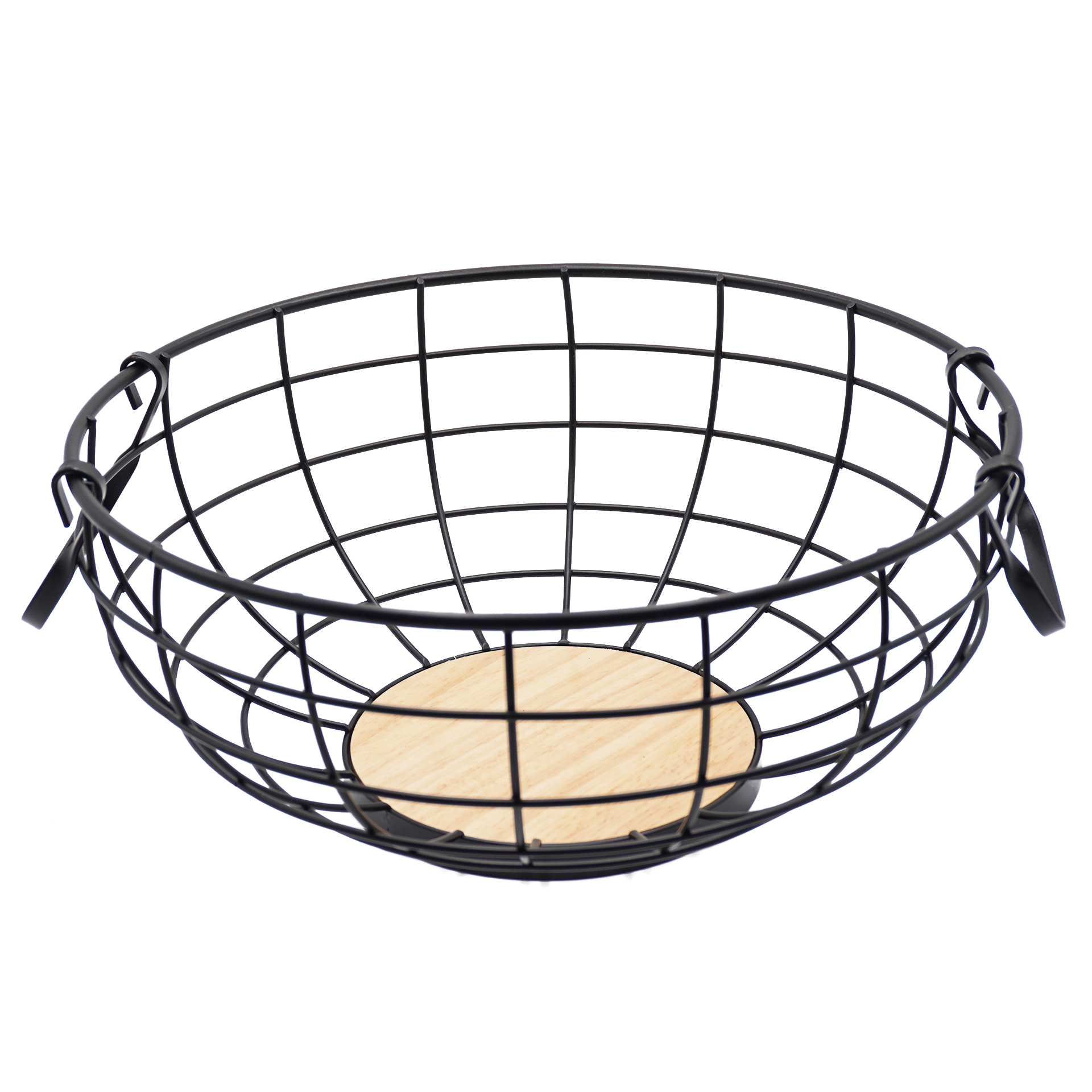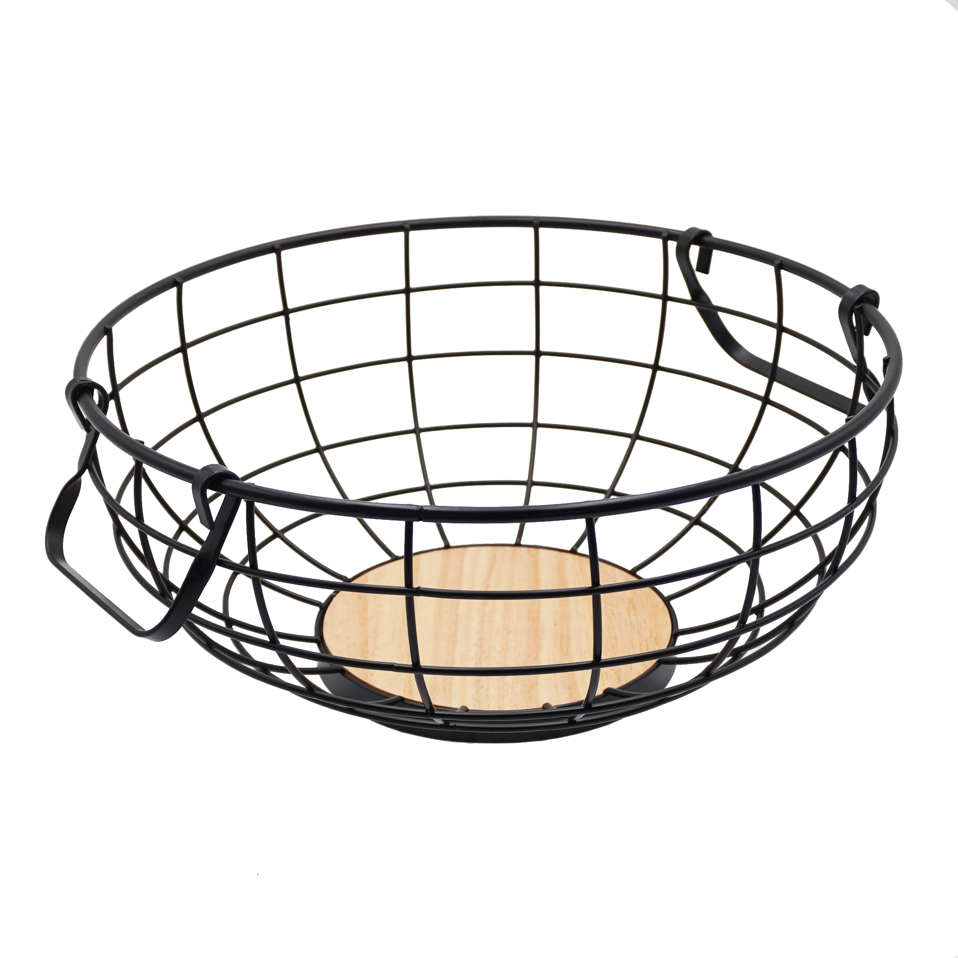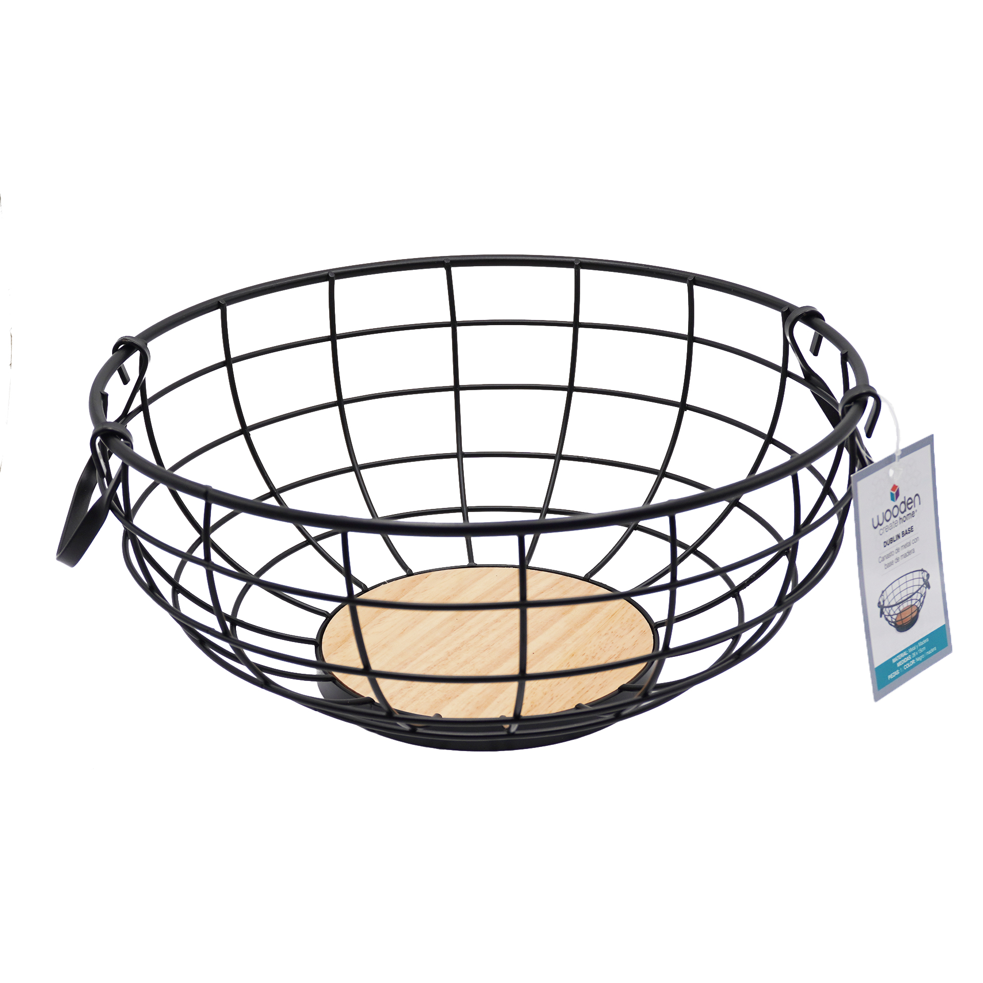CANASTO DE METAL CON 2 MANIJAS DE MADERA