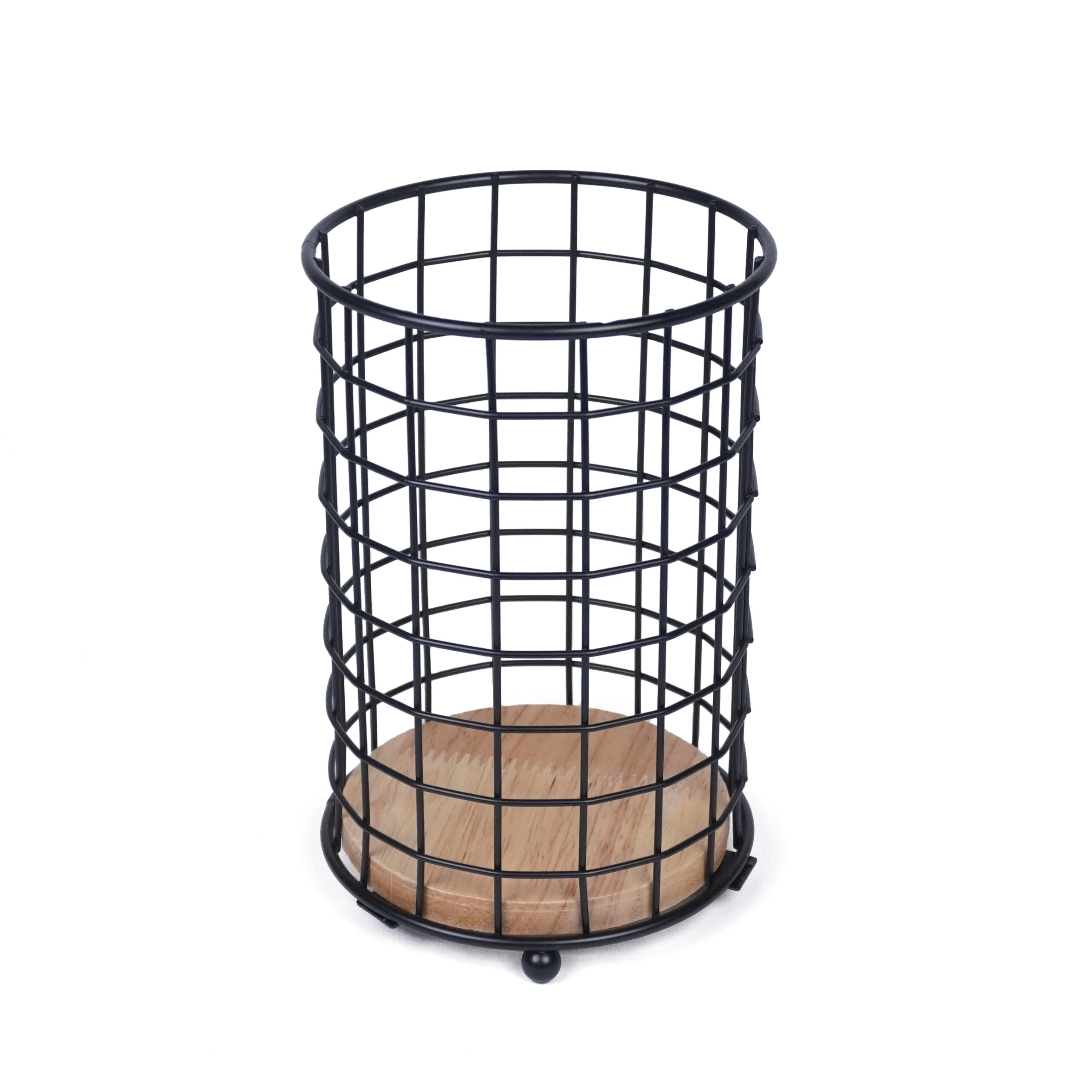 CANASTO DE METAL CON MANIJA DE MADERA