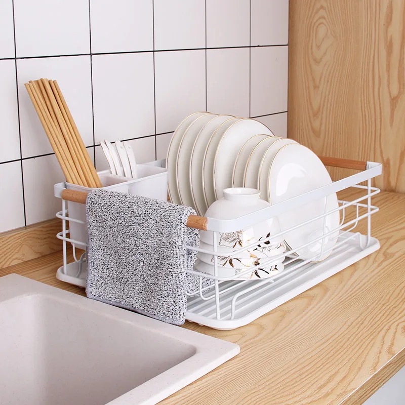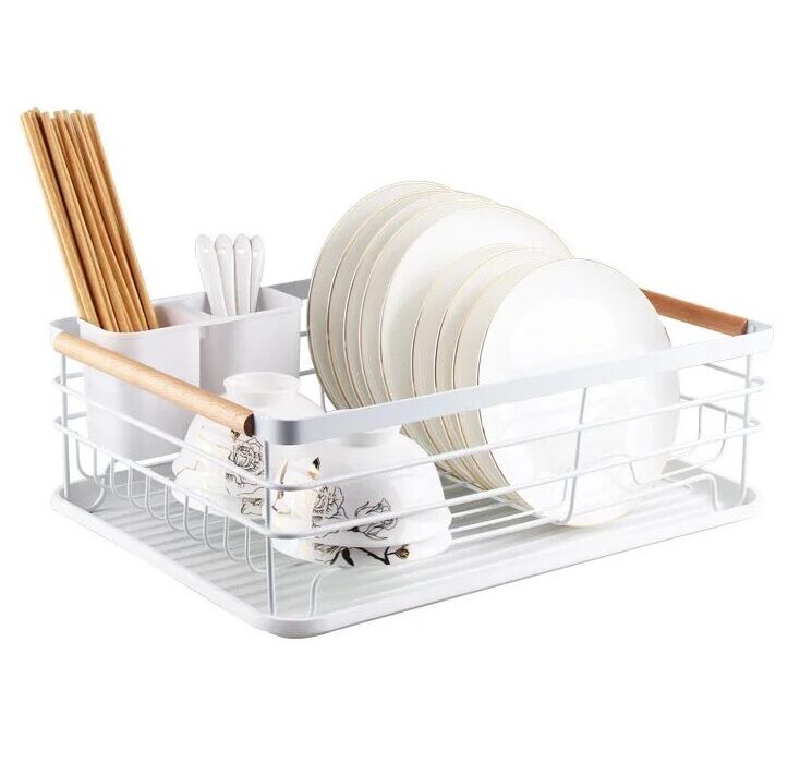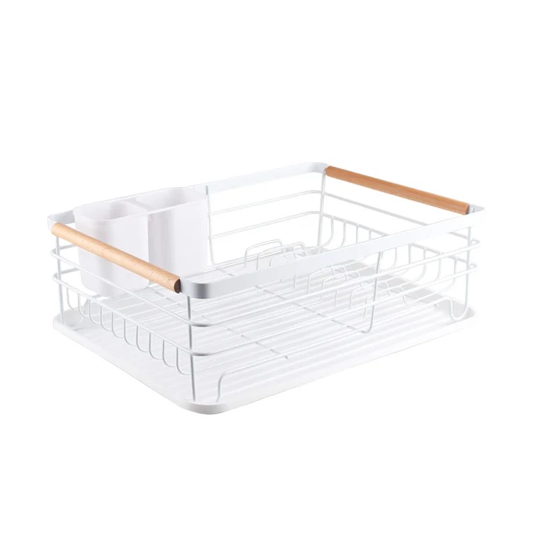 CANASTO DE METAL CON MANIJA DE MADERA