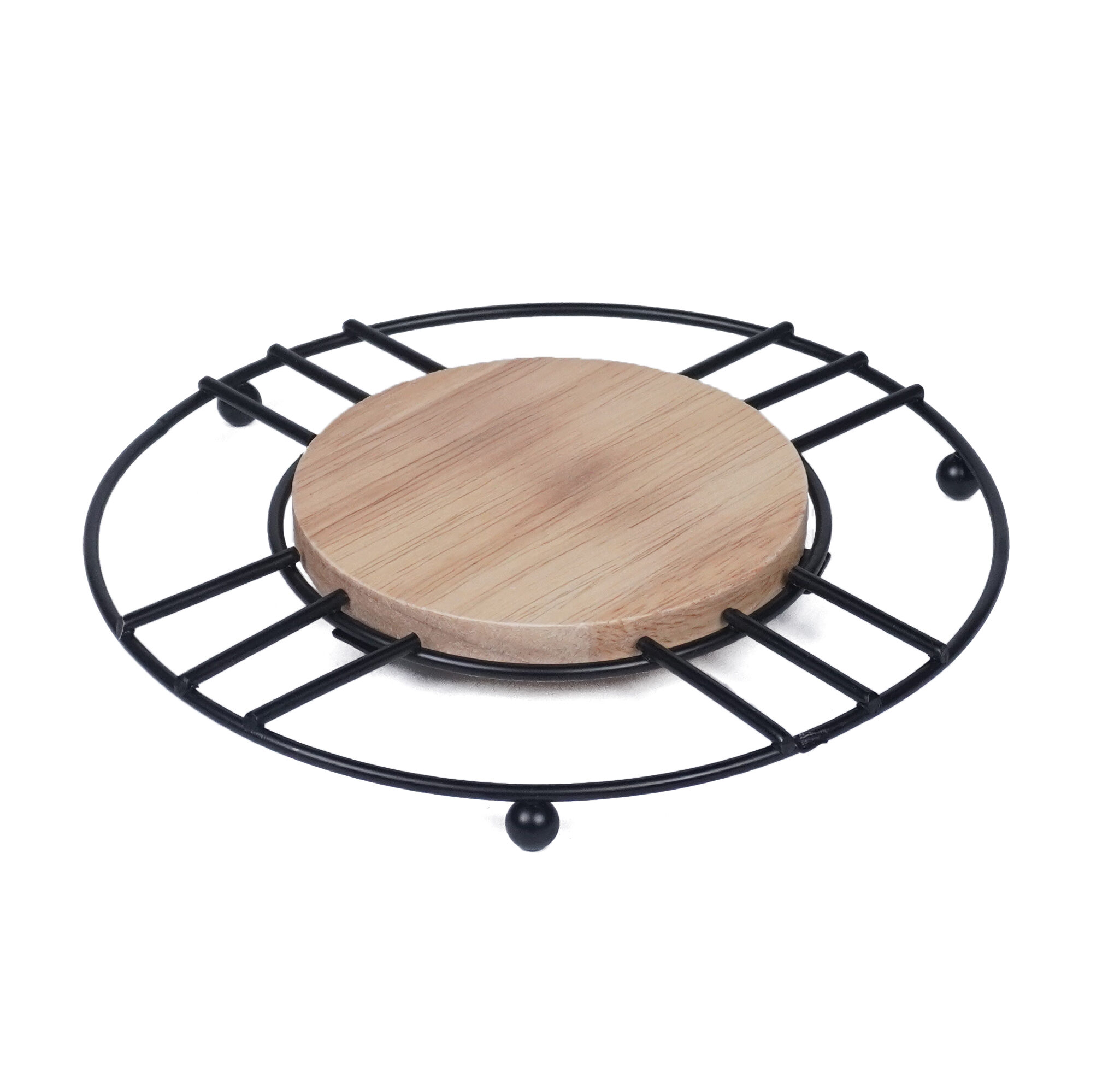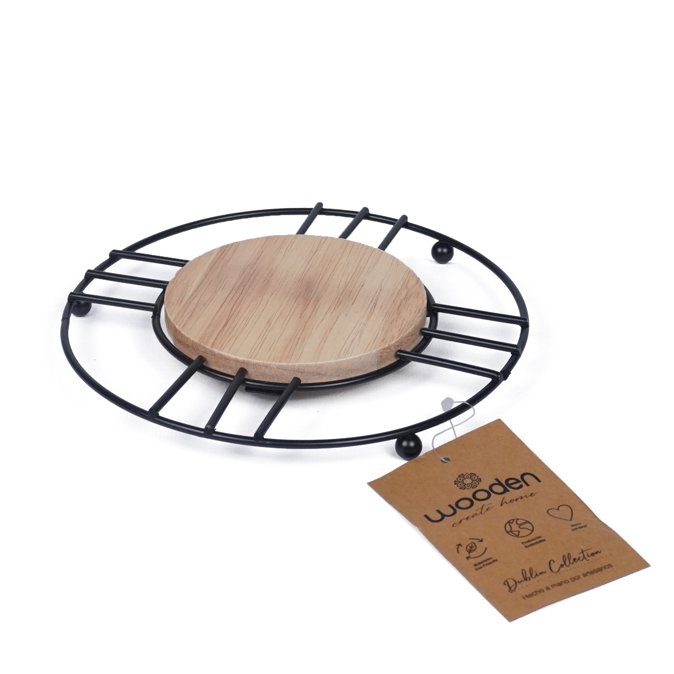 CANASTO DE METAL CON MANIJA DE MADERA