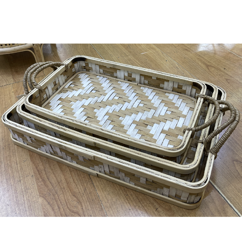 CAJA DE PLÁSTICO CON TAPA BAMBU RECTANGULAR (L)