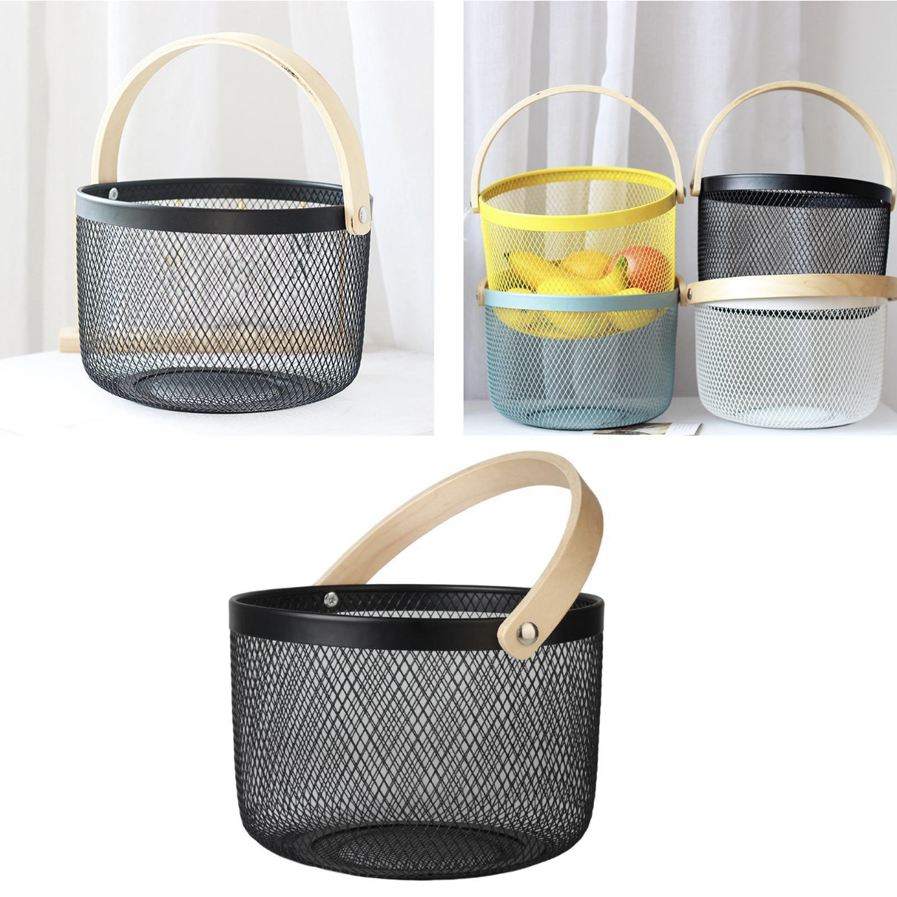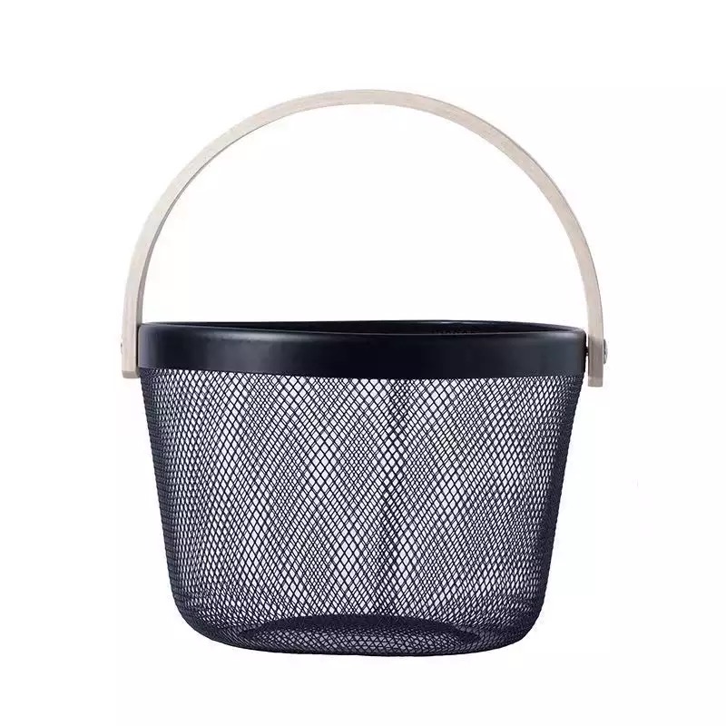CANASTO DE METAL CON BASE DE MADERA