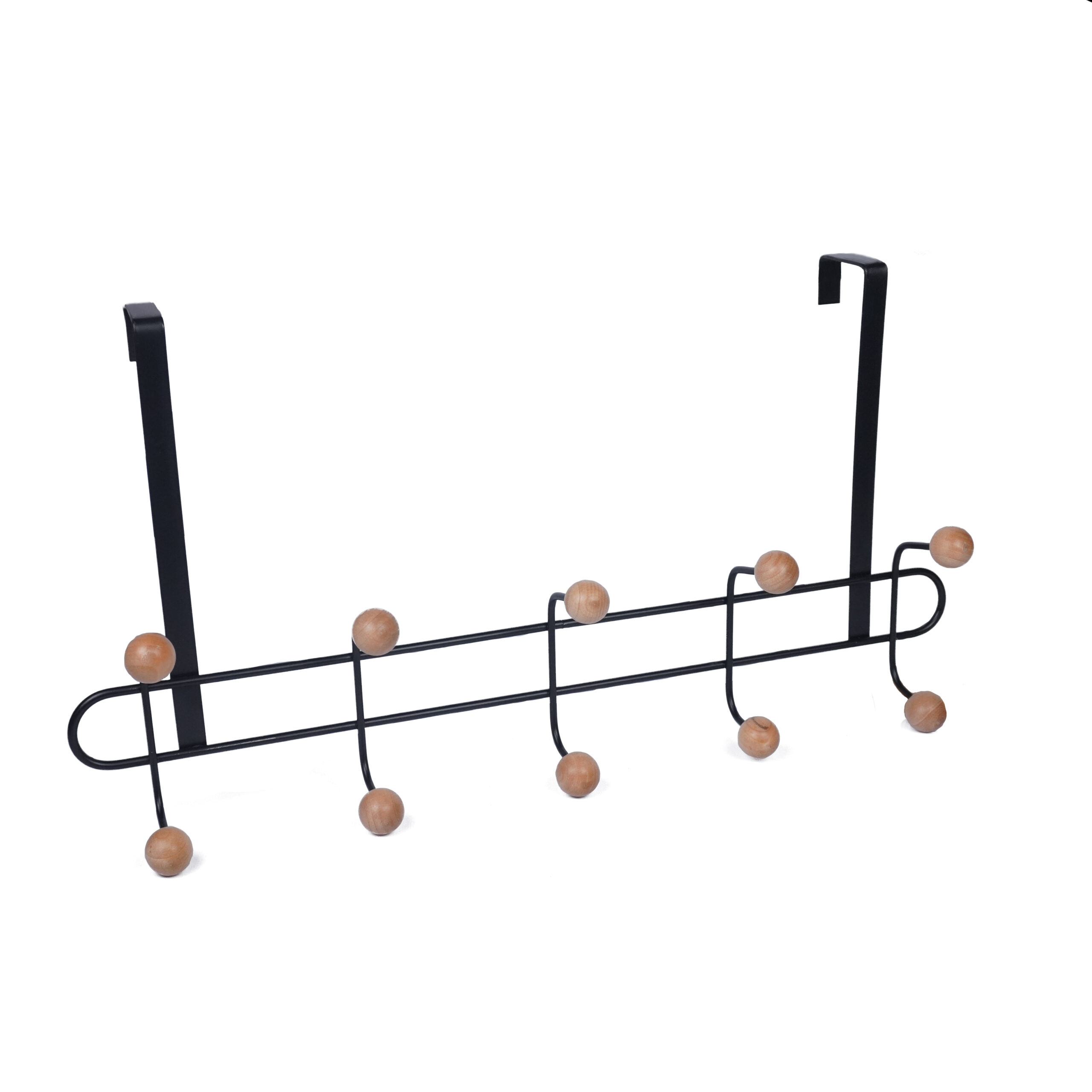 PERCHERO DE PUERTA DE METAL Y MADERA (5 GANCHOS)