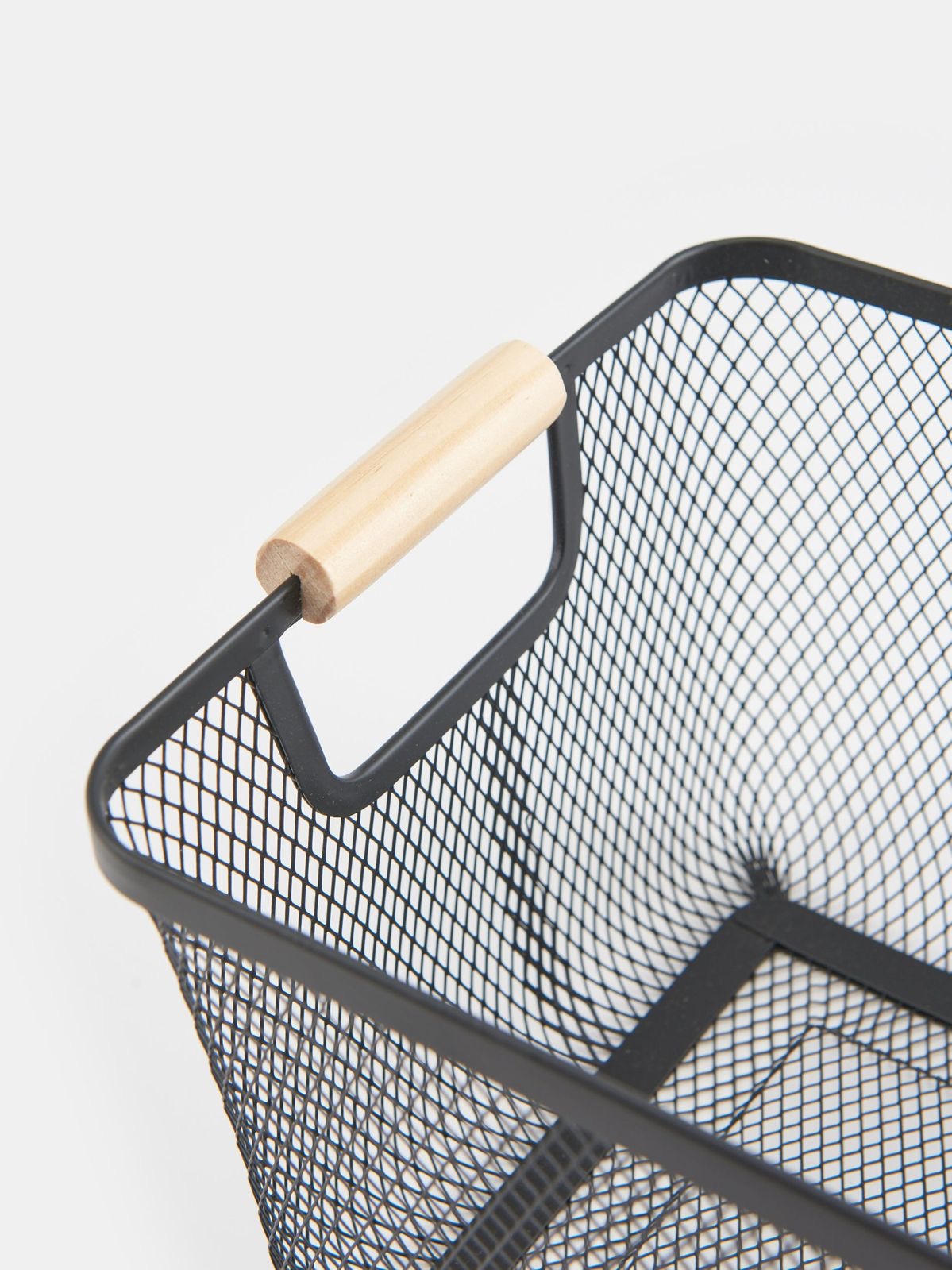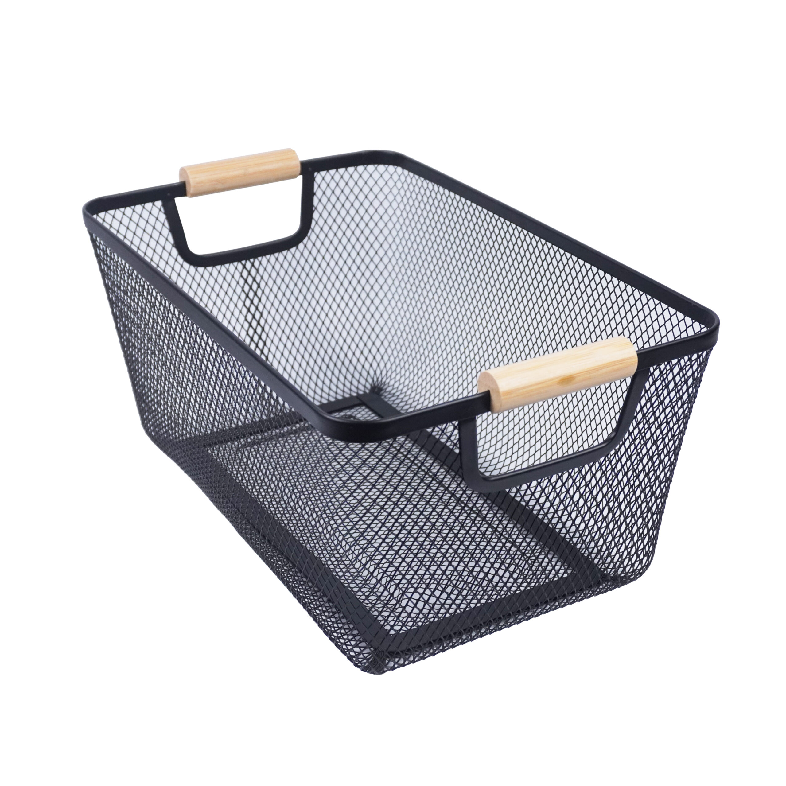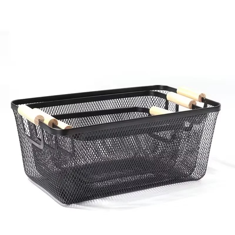 CANASTO DE METAL CON 2 MANIJAS DE MADERA