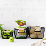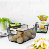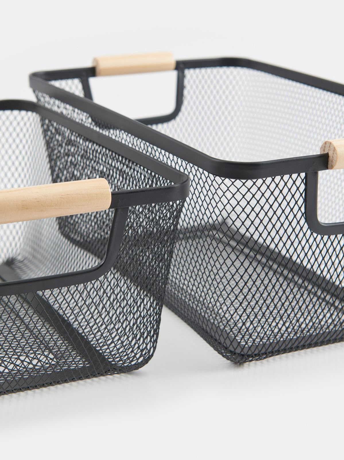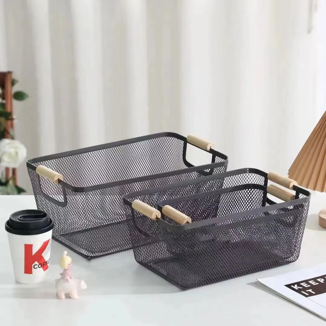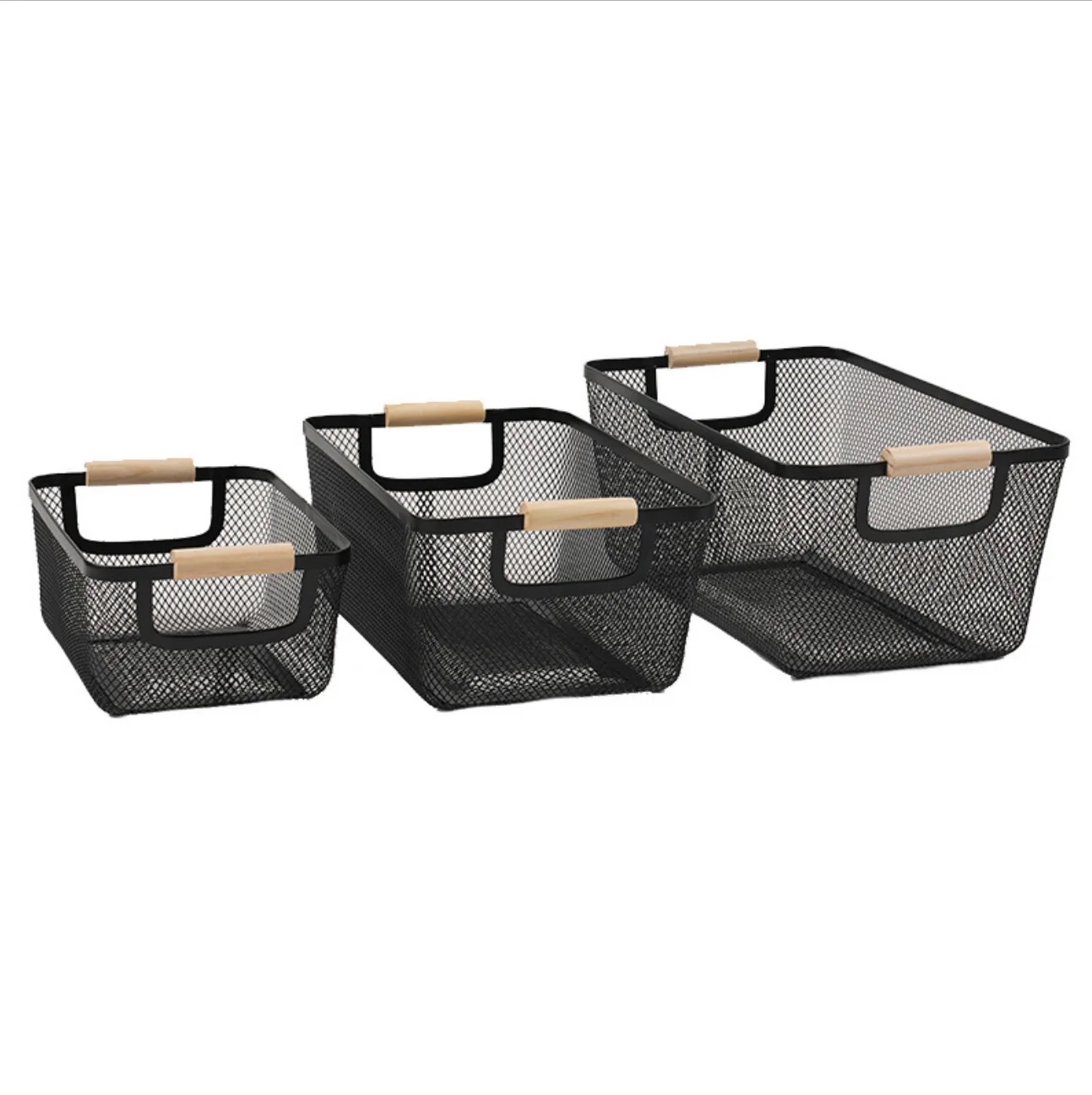 CANASTO DE METAL CON 2 MANIJAS DE MADERA