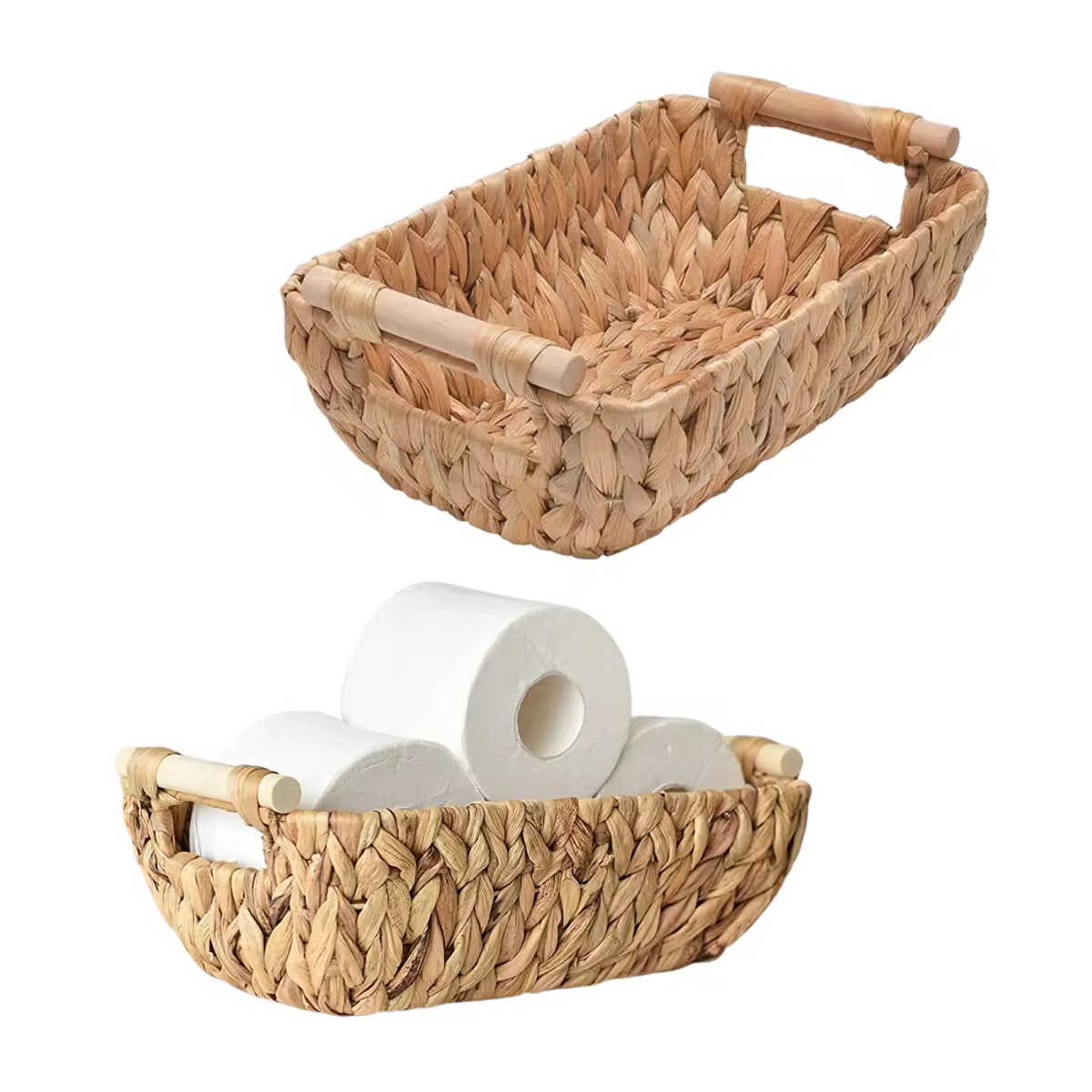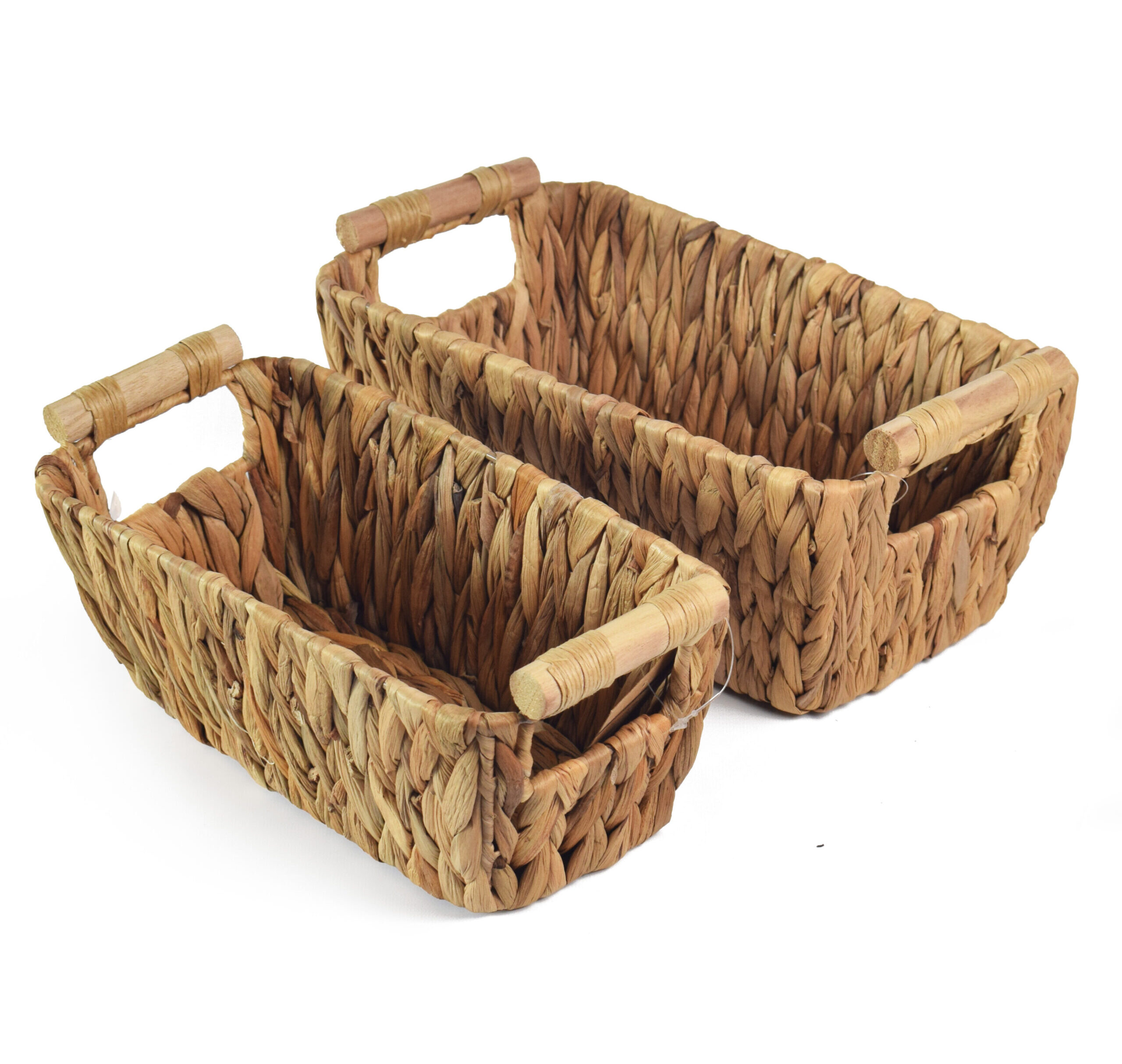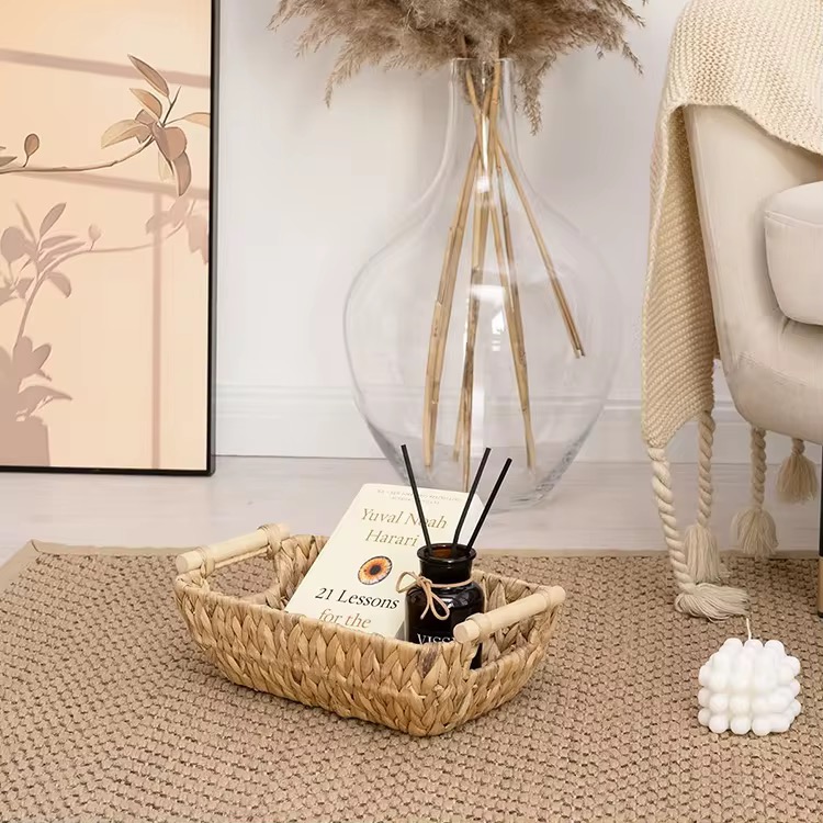 CAJA PLEGABLE FORRADA EN LINO MANIJA DE MADERA (L)