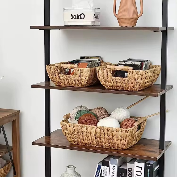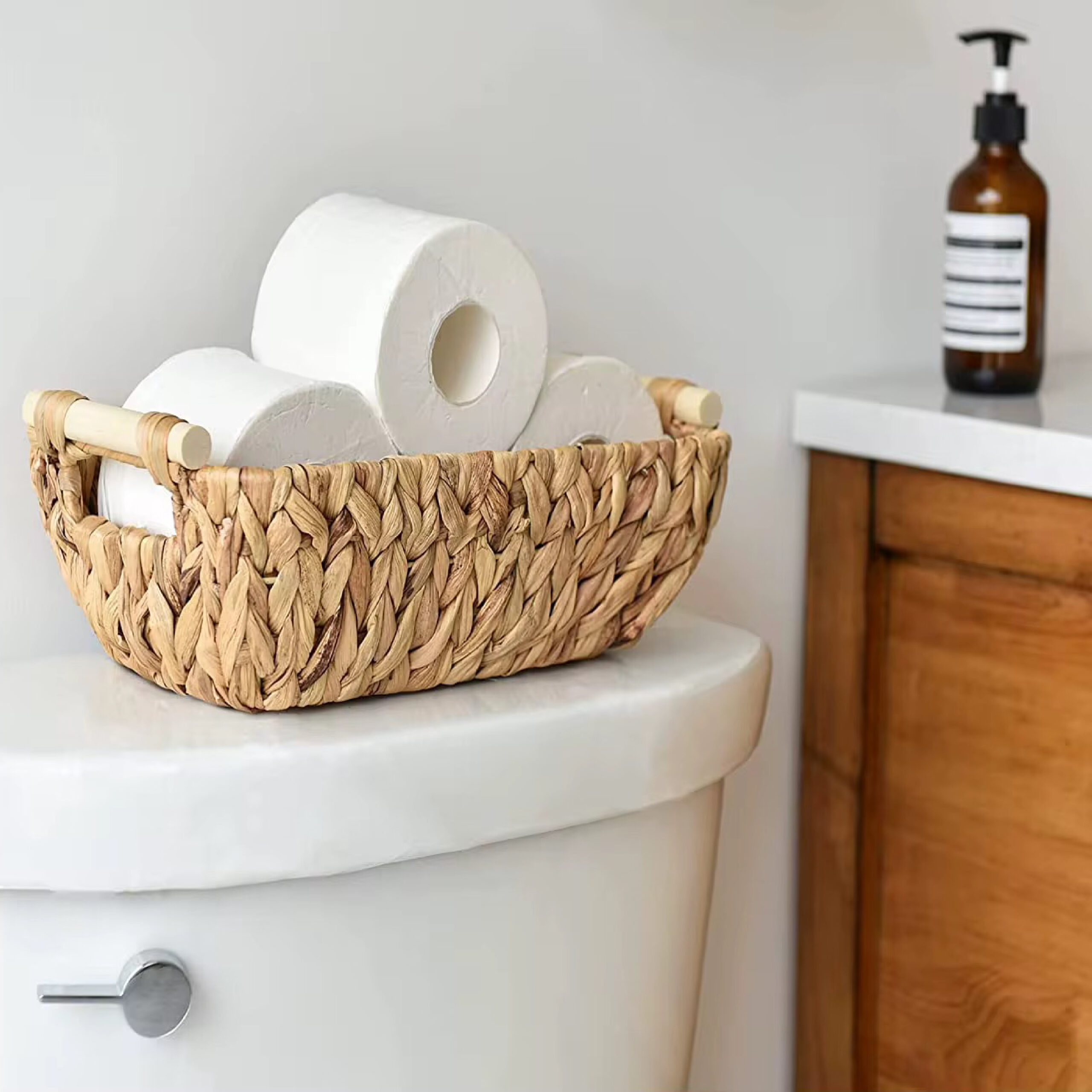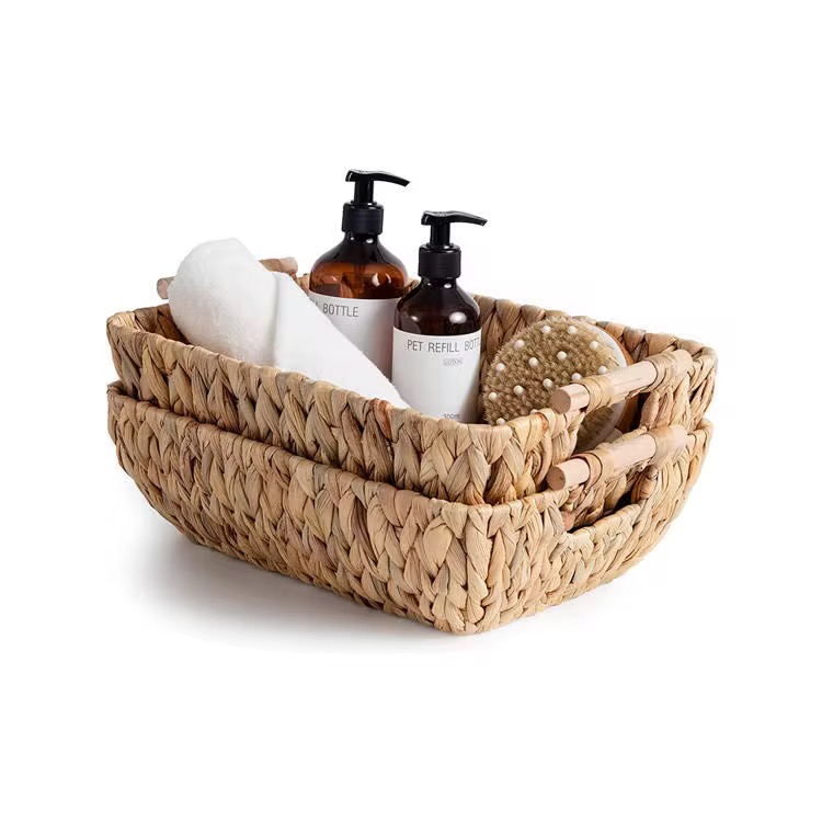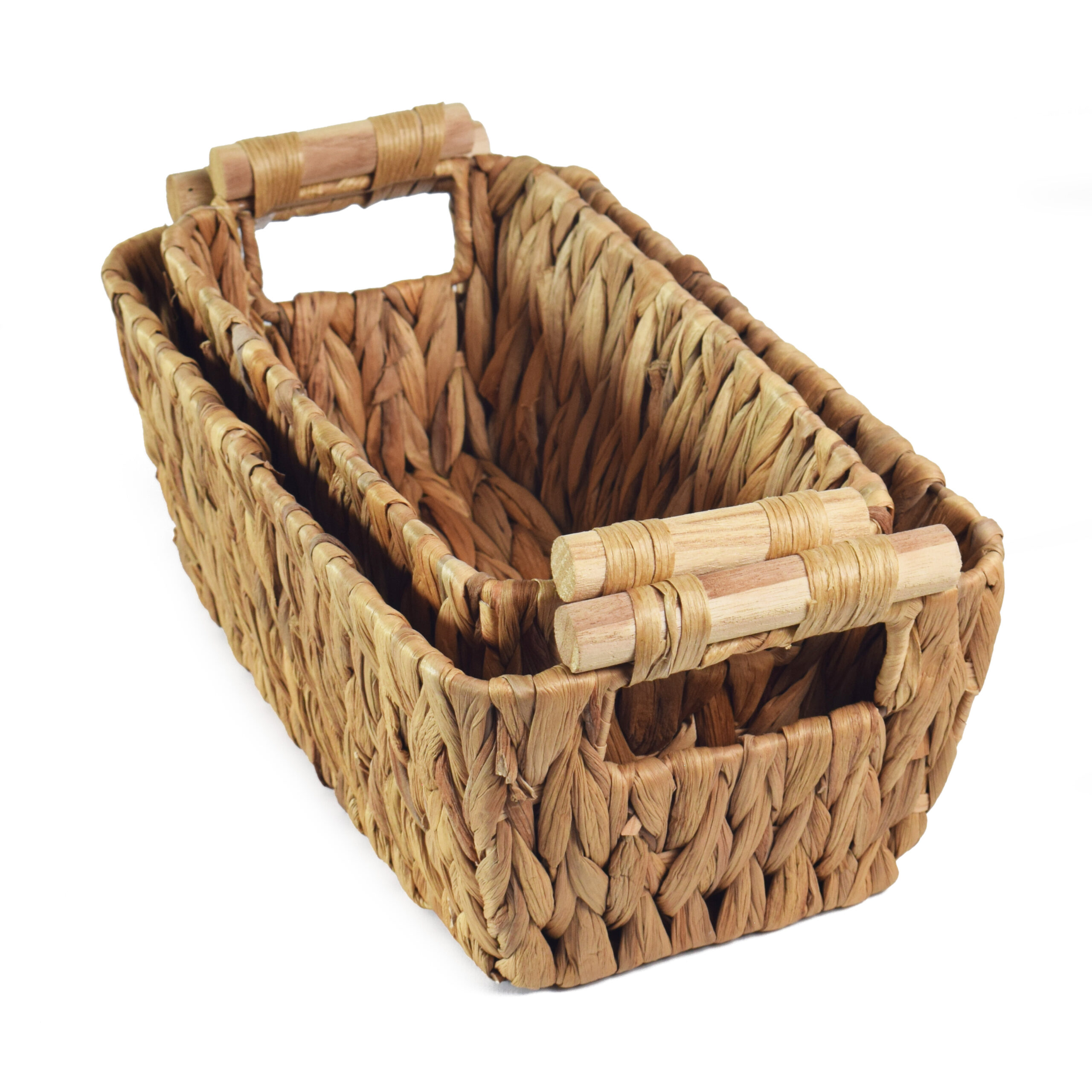 CAJA PLEGABLE FORRADA EN LINO MANIJA DE MADERA (L)