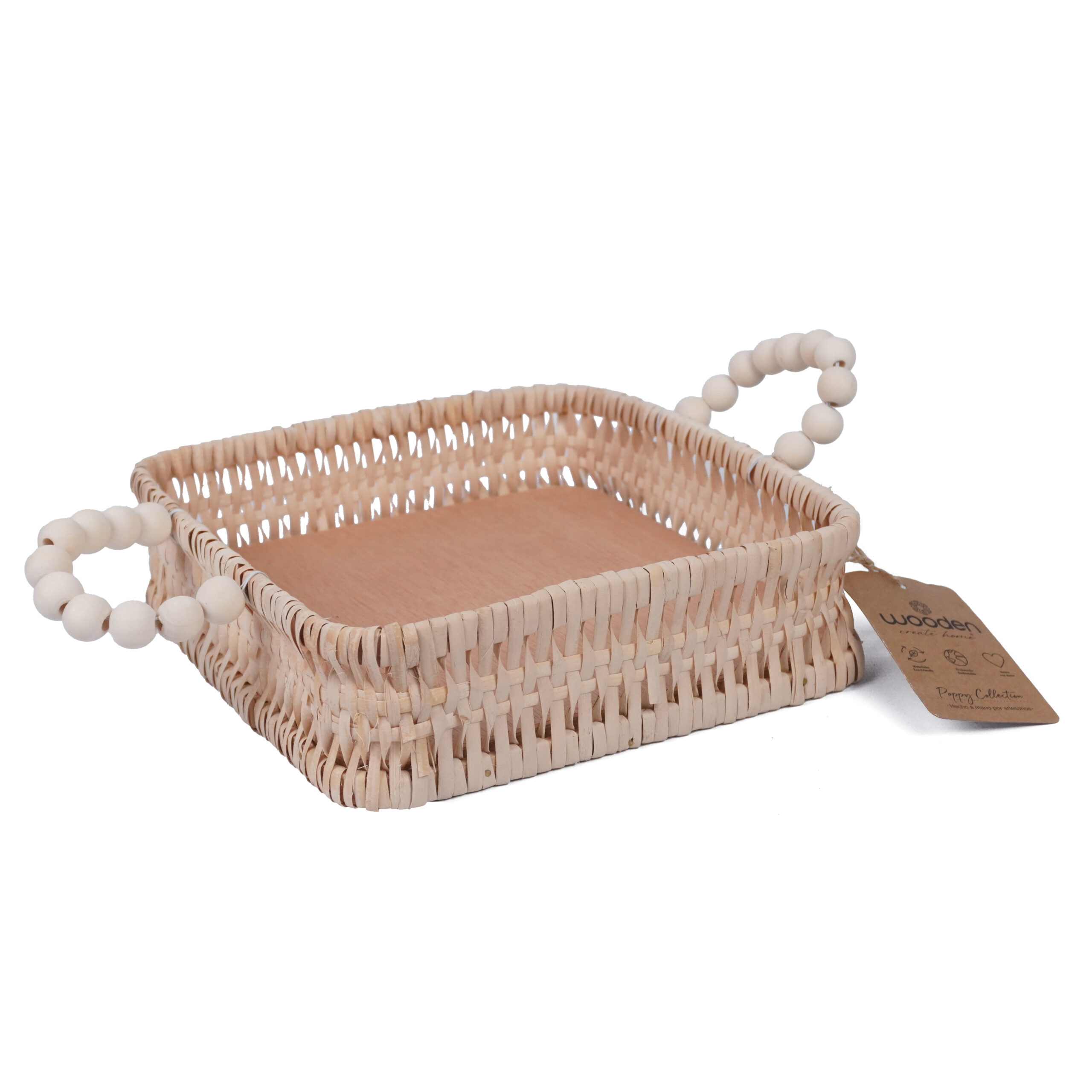 CANASTO DE METAL CON MANIJA DE MADERA