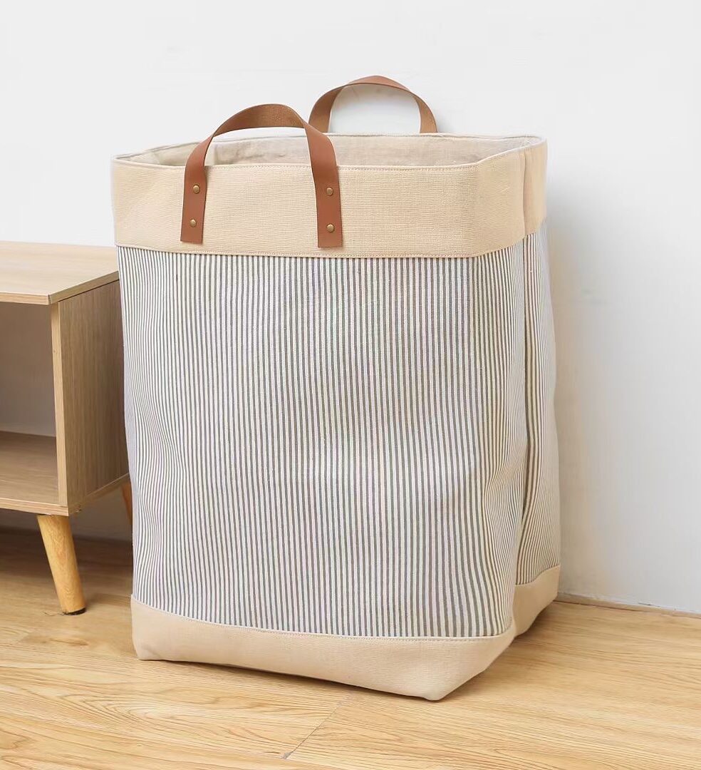 CAJA PLEGABLE FORRADA EN LINO MANIJA DE MADERA (L)