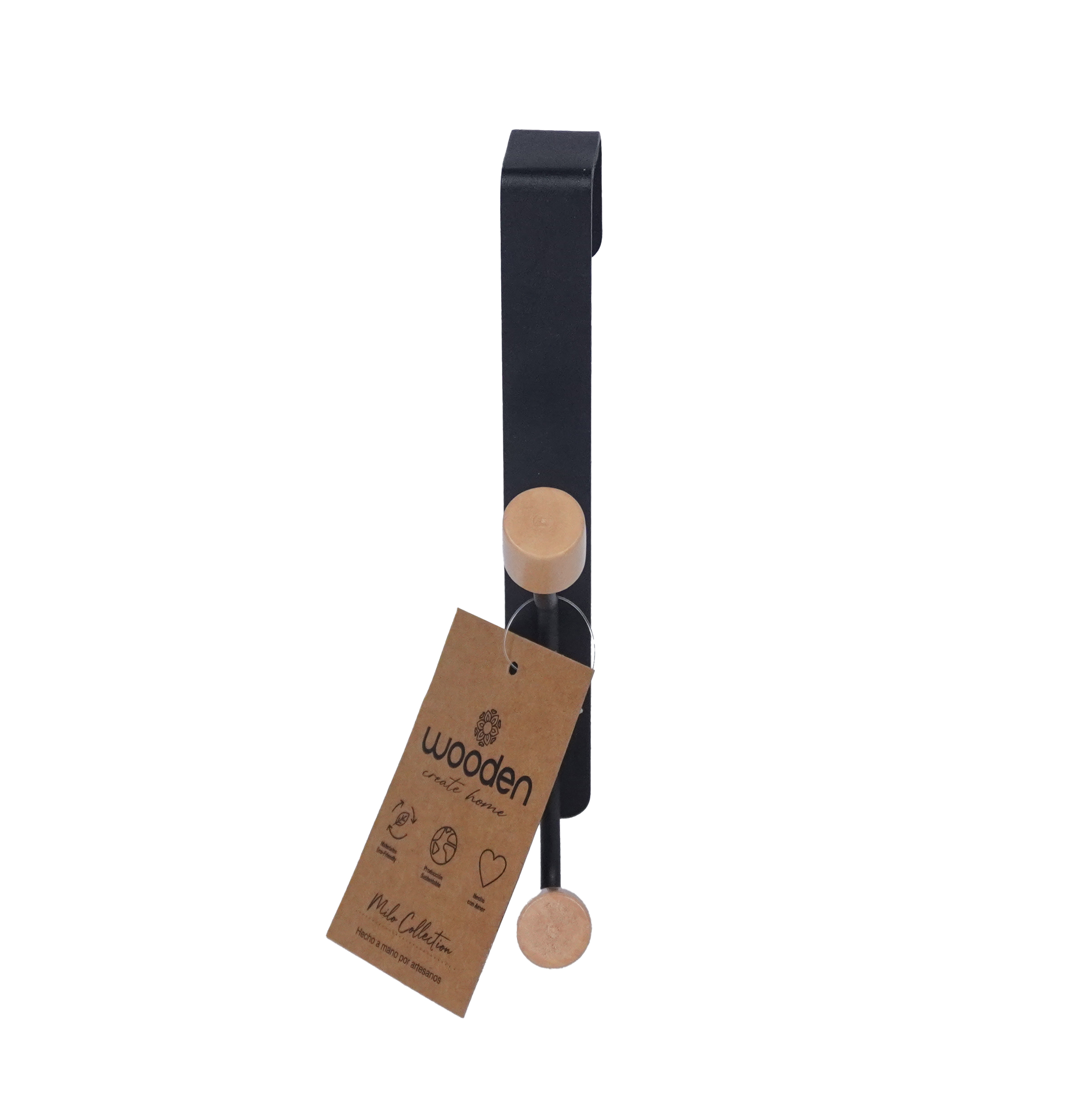 PERCHERO DE PUERTA DE METAL Y MADERA (5 GANCHOS)
