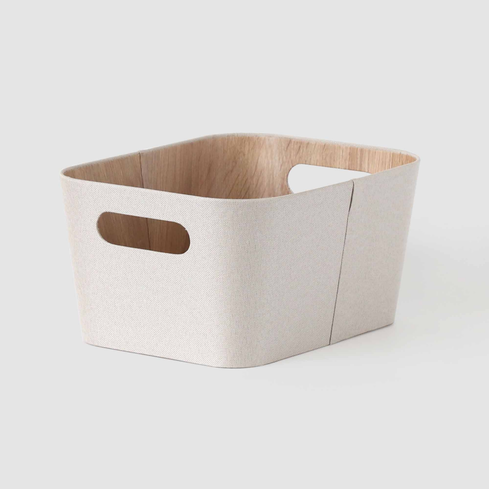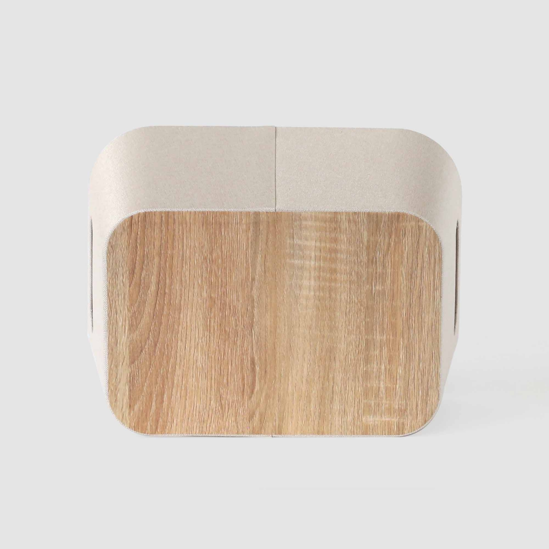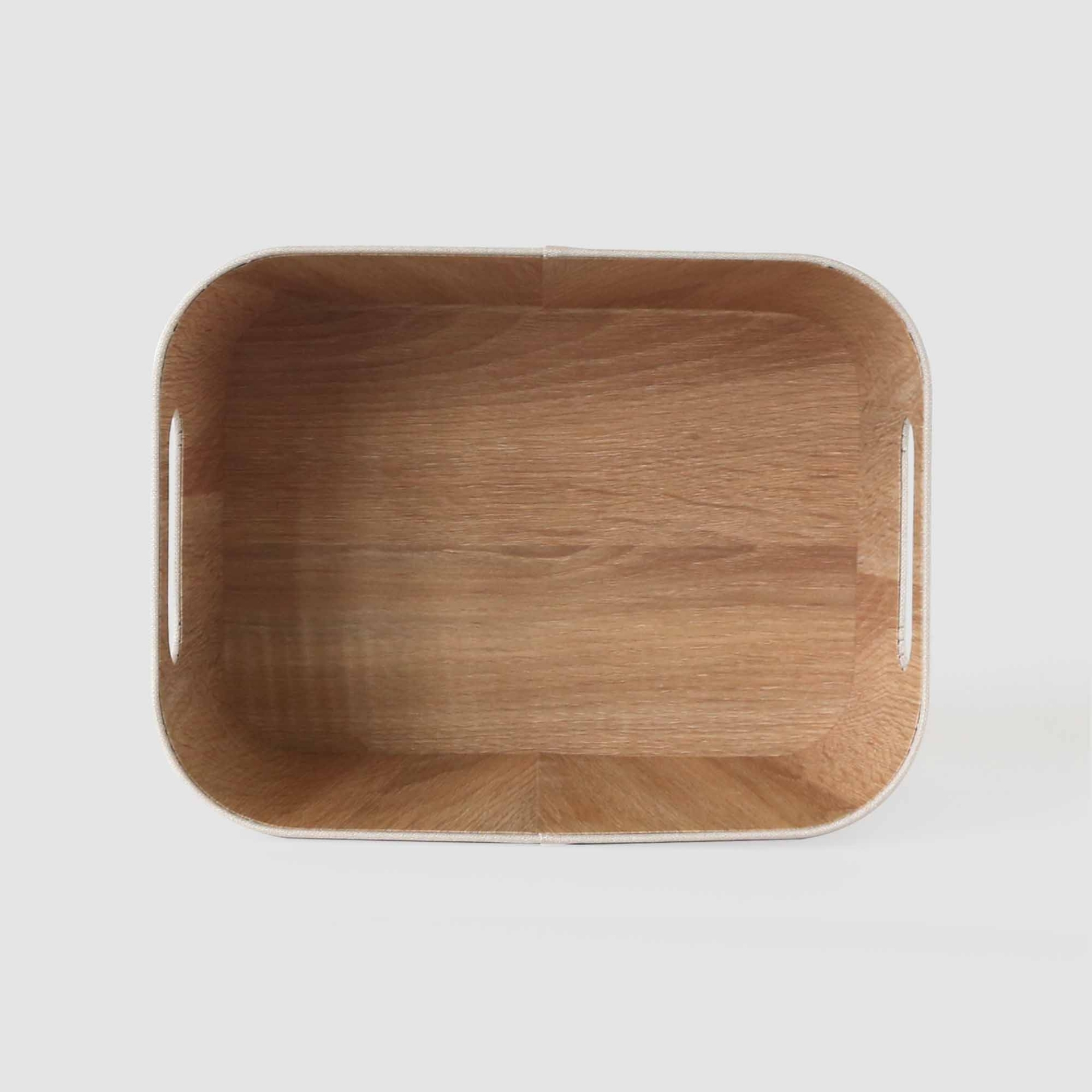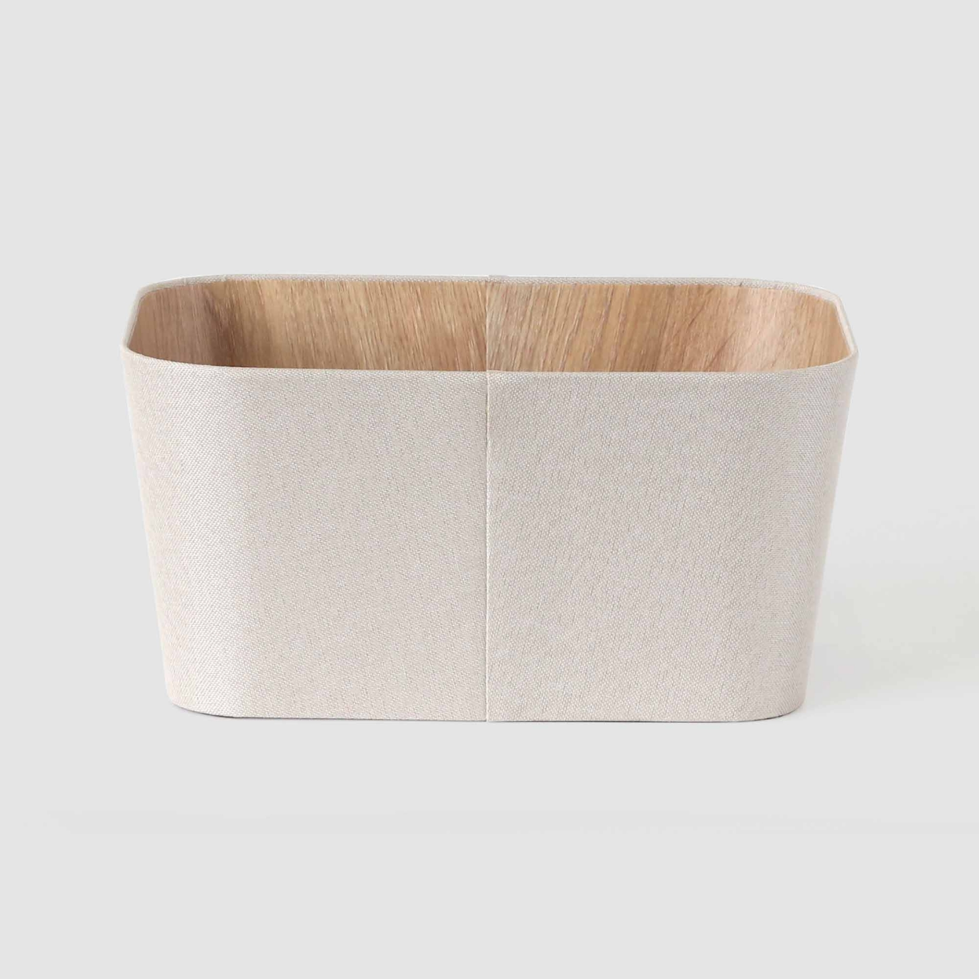 CAJA PLEGABLE FORRADA EN LINO MANIJA DE MADERA (L)